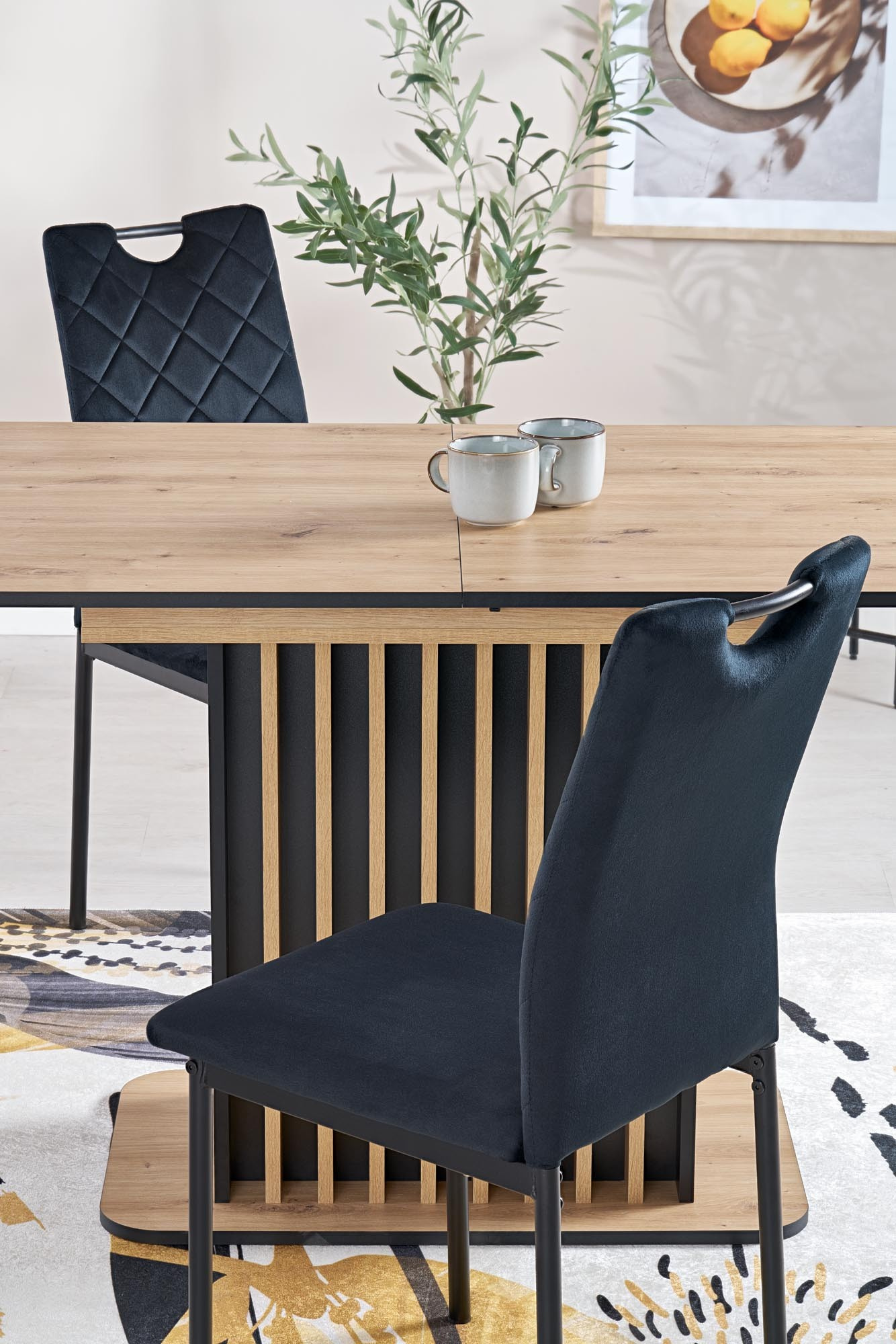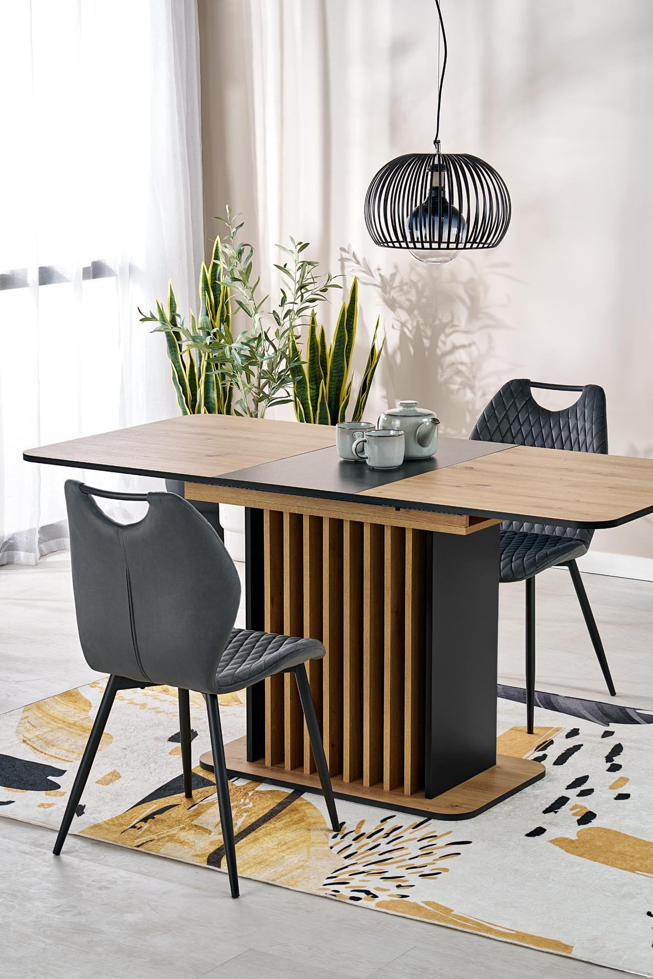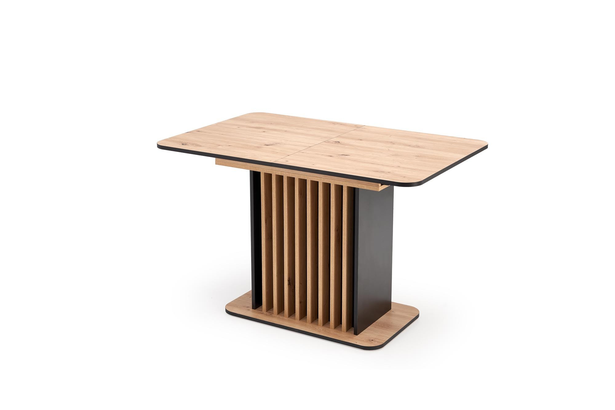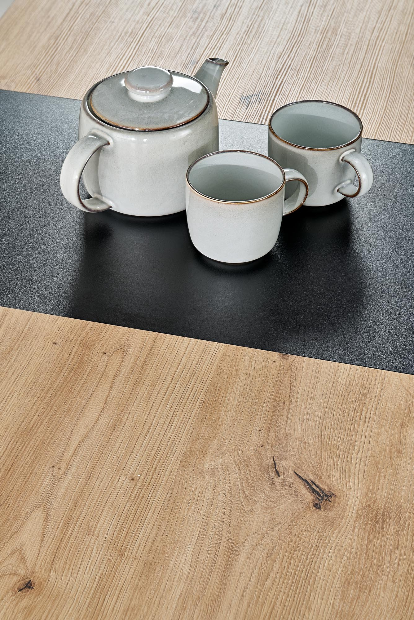 rozkladací stôl, materiál: laminovaná nábytková doska, farba: doska - dub artisan / čierna, nohy - dub artisan / čierna