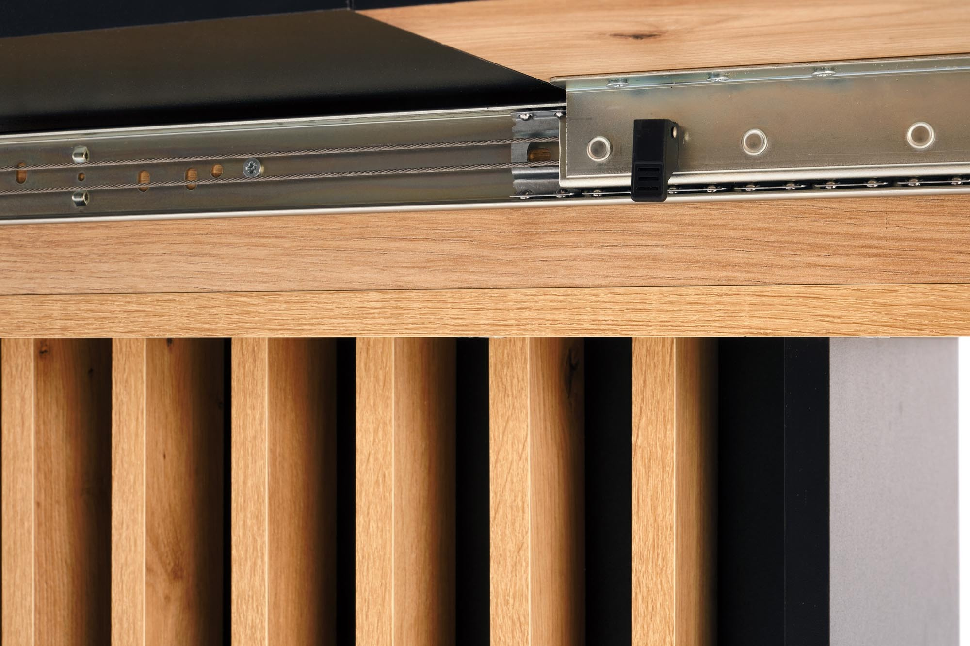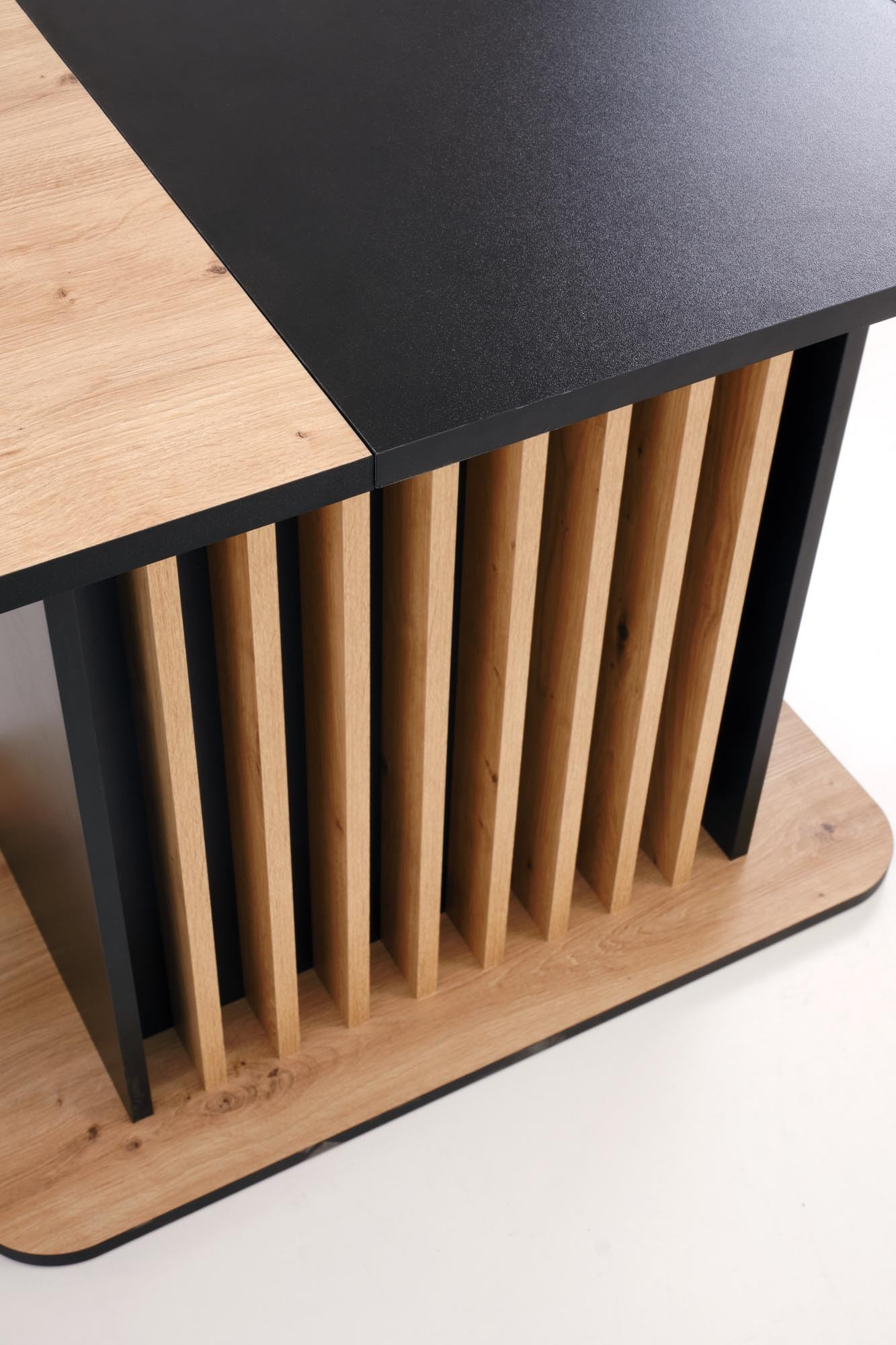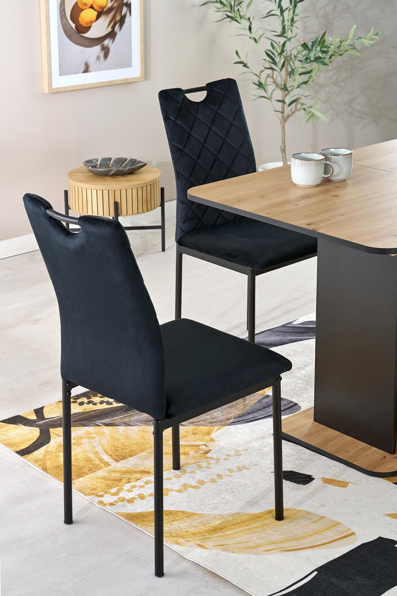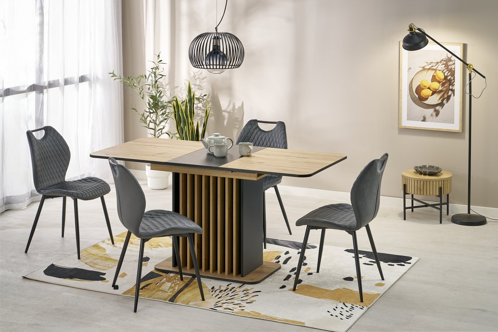 rozkladací stôl, materiál: laminovaná nábytková doska, farba: doska - dub artisan / čierna, nohy - dub artisan / čierna