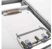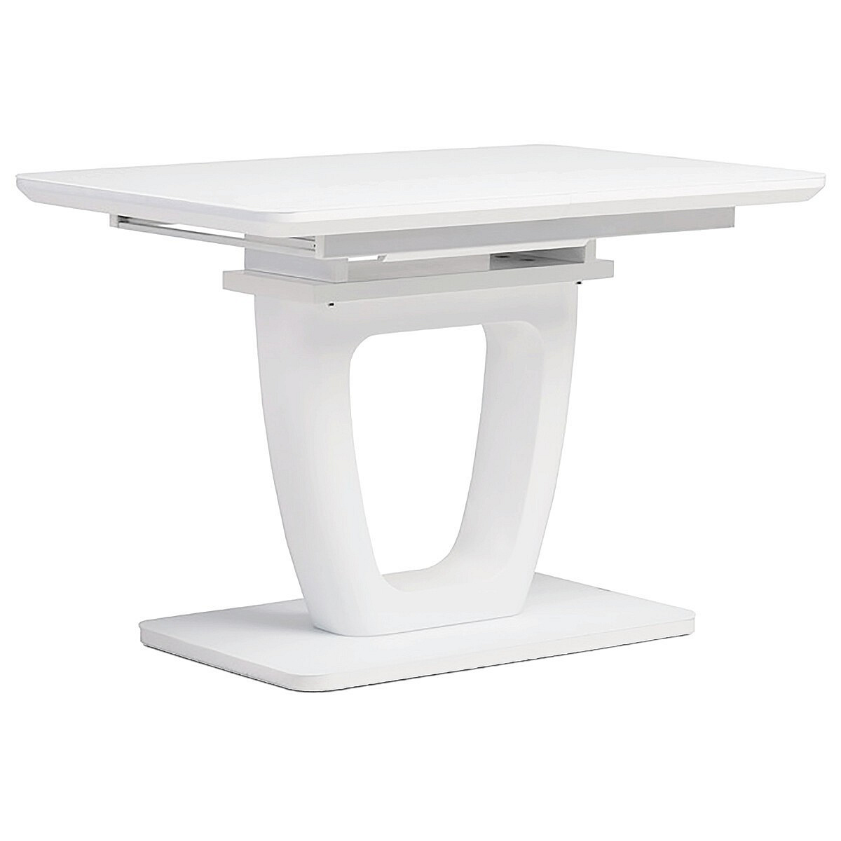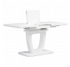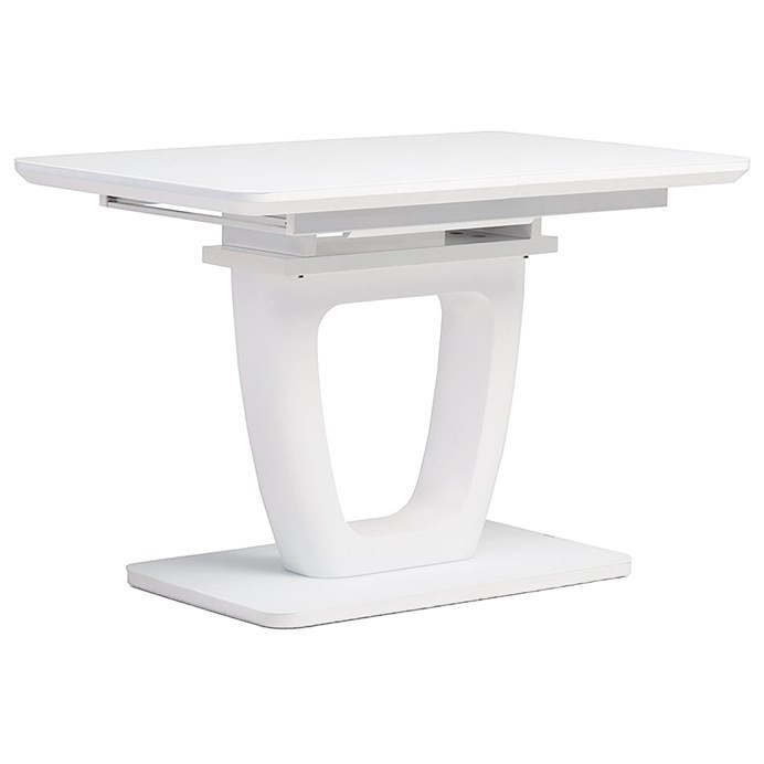 Jedálenský stôl 110+40x75 cm, biela sklenená doska 4 mm, MDF, biely matný lak