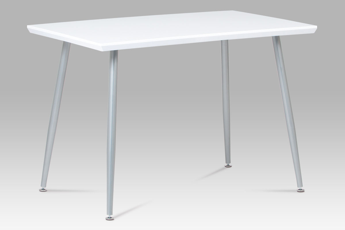 Moderný jedálenský stôl s rozmermi 110x70 cm, konštrukcia je lakovaná sivým lakom, stolová doska je v bielom lesku. Hrúbka dosky je 4 cm. K tomuto stolu odporúčame vybrať stoličky so sivou lakovanou štruktúrou, napr. DCL-102 BK / GREY / WT, tiež.