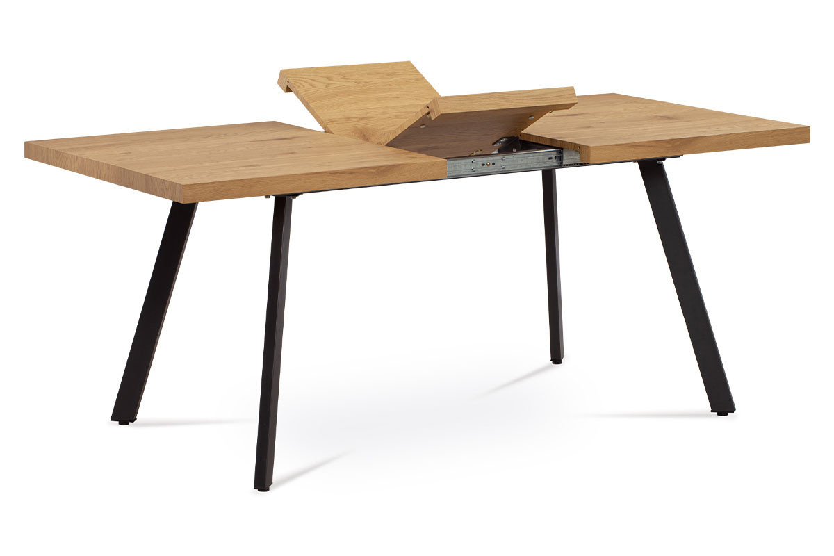 Jedálenský stôl 140+40x85x76 cm, vrchná doska MDF, 3D dekor dub, kovové nohy, antracitová farba