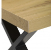 Jídelní stůl HT-R5316 OAK nabízí prostornou pracovní plochu o rozměrech 180x90 cm, která je vyrobena z odolného lamina s matnou povrchovou úpravou v dekoru dubu. Deska je opatřena ABS hranou, která chrání okraje před poškozením a usnadňuje údržbu. Stabilní kovové nohy ve tvaru X v černém provedení zajišťují pevnou oporu a moderní industriální vzhled. Stůl je navržen bez rozkládací funkce, což podtrhuje jeho jednoduchost a robustnost. Výška 76 cm odpovídá standardním ergonomickým parametrům pro pohodlné sezení u jídelního stolu.