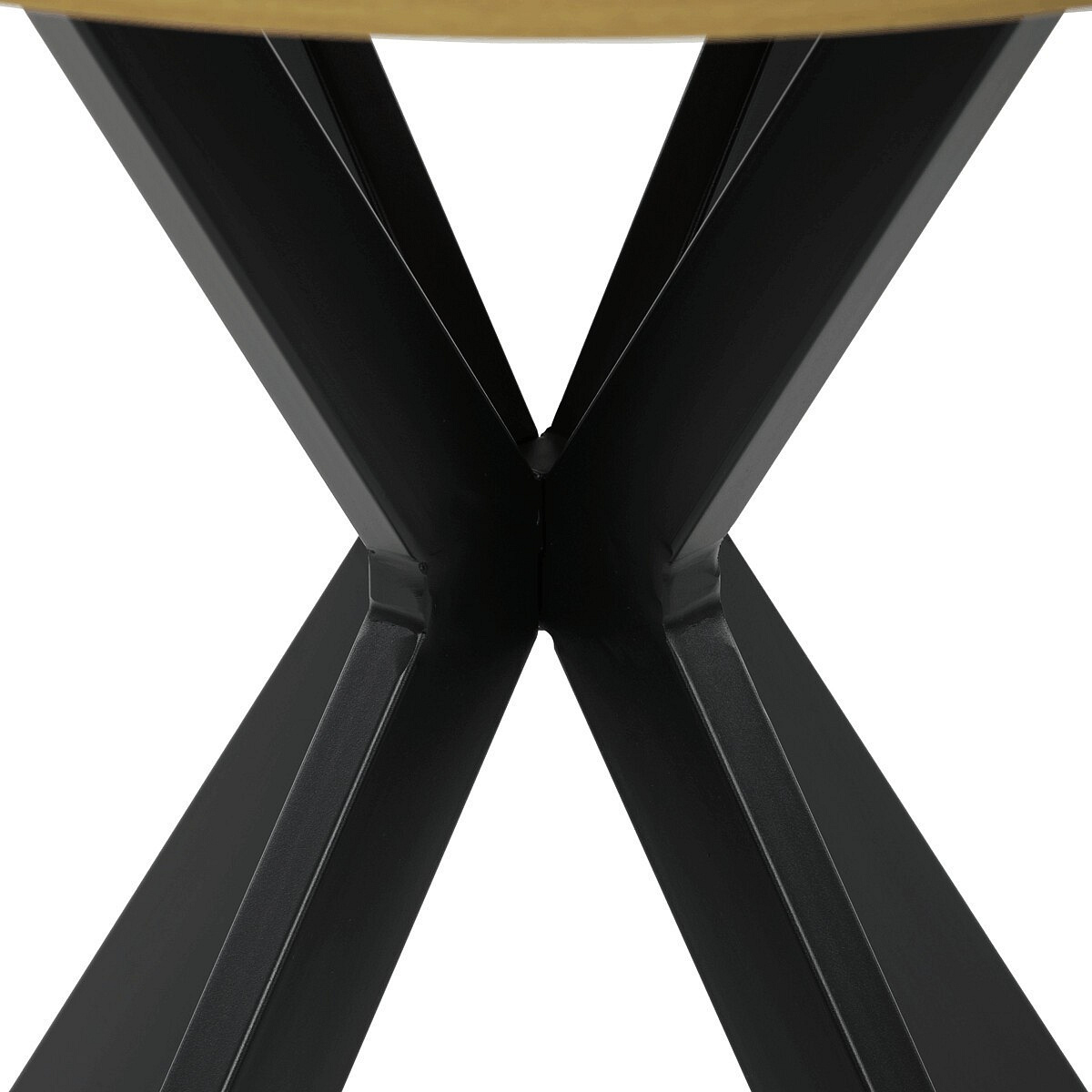 Jídelní kulatý stůl HT-F4108 OAK značky Autronic vyniká kombinací přírodní MDF desky s dekorem divokého dubu a robustní černé kovové podnože ve tvaru propletených nohou, která zajišťuje stabilitu a moderní industriální vzhled. Deska stolu je vyrobena z MDF materiálu s povrchovou úpravou v dekoru divoký dub, doplněná o ABS hranu, která chrání okraje před poškozením a prodlužuje životnost. Kovová podnož je opatřena práškovým lakem v černé barvě, což zvyšuje odolnost proti korozi a mechanickému opotřebení, a její design s propletenými nohami přispívá k pevnosti konstrukce i estetické originalitě. Stůl je vybaven rektifikačními nohami, které umožňují vyrovnání nerovností podlahy a zajišťují stabilní postavení v různých prostorách. Průměr desky 80 cm a výška 75 cm poskytují dostatečný prostor pro pohodlné stolování pro menší počet osob, přičemž kulatý tvar podporuje sociální interakci a snadný přístup ke všem částem stolu. Díky kombinaci kvalitních materiálů, preciznímu zpracování a praktickým funkcím je tento jídelní stůl vhodný jak do domácích interiérů, tak i do komerčních prostor s důrazem na design a funkčnost.