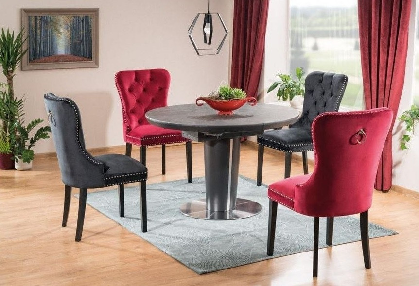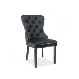 Jedálenská stolička AUGUST VELVET je moderná stolička čalúnená príjemnou zamatovou poťahovou látkou. Nohy stoličky sú vyrobené z dreva a majú čiernu farbu.