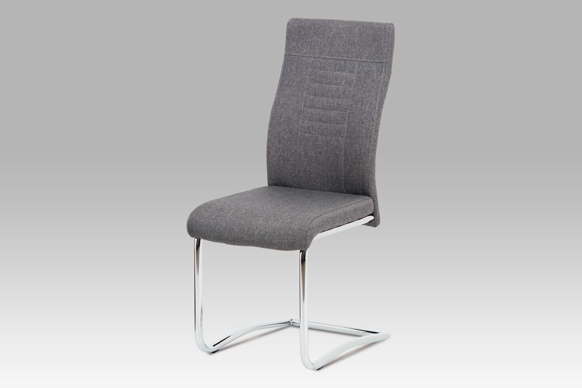 Táto moderná jedálenská stolička so sivým látkovým sedákom, elegantným prešívaním na operadle a pochrómovanou podnožou bude ozdobou každej kuchyne alebo jedálne. Nosnosť do 110 kg.