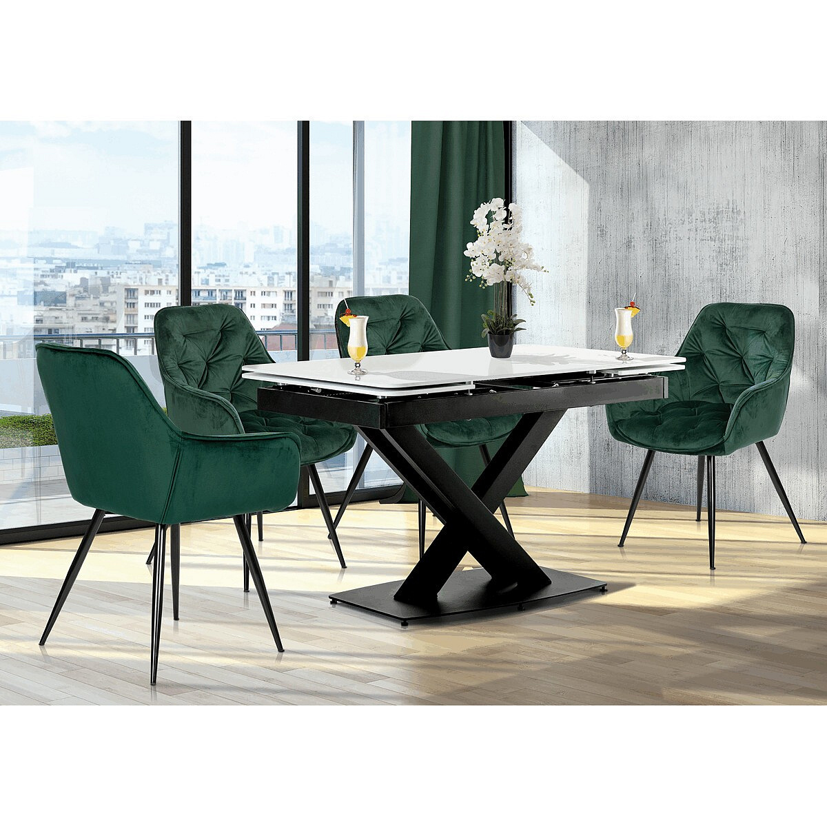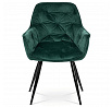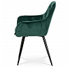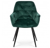 Jedálenská stolička, zelená zamatová látka, kovová štvornohá podnož, čierny matný lak