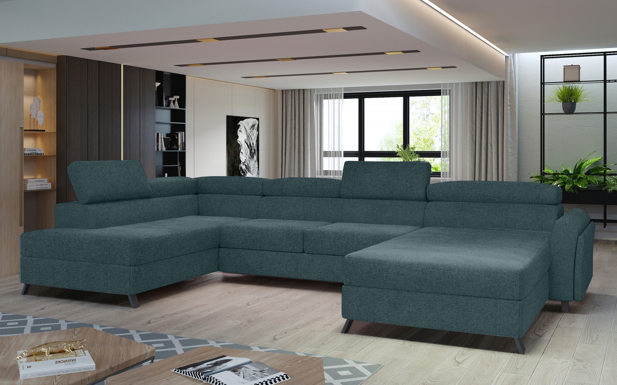 Josette je multifunkčná, pohodlná a priestranná rohová pohovka v tvare U, ktorá môže byť luxusným zakončením priestrannej obývačky. Toto je vysoko kvalitný kus nábytku, synonymum pohodlia a elegancie v jej čistej podobe. To všetko vďaka širokému sedáku s hĺbkou 55 cm a pevnej výplni s vlnitou pružinou spolu s penou T30 + HR, ktoré poskytujú efekt výnimočnej pružnosti, mäkkosti a zároveň sa starajú o správnu polohu nášho tela pri používaní nábytku. Za Josette, ktorá meria 370 x 190 x 98 cm, sa neskrýva len pohodlie spôsobené priestranným miestom na odpočinok, ale aj dobre prespané noci. Toto je tu tiež splnené mechanizmom delfín, ktorý intuitívnym a bezproblémovým spôsobom rozkladá nábytok do požadovanej polohy, vďaka čomu sa pohovka premení na posteľ o rozmeroch 110 x 300 cm. Naša rohová pohovka je tiež vybavená praktickým a priestranným úložným priestorom na posteľnú bielizeň. Medzi vlastnosti tohto modelu môžeme zahrnúť nastaviteľné opierky hlavy, široké a pohodlné sedadlo, rovnako ako elegantné nohy vyrobené z kovu a dreva. Ak ste zvedaví, čím ďalším vás môže Josette prekvapiť - pozývame vás k zakúpeniu našej rohovej pohovky.