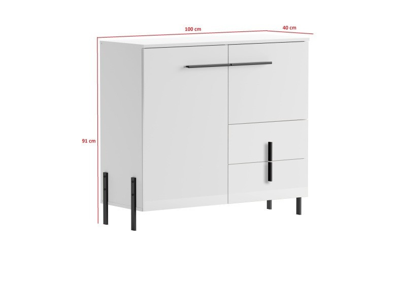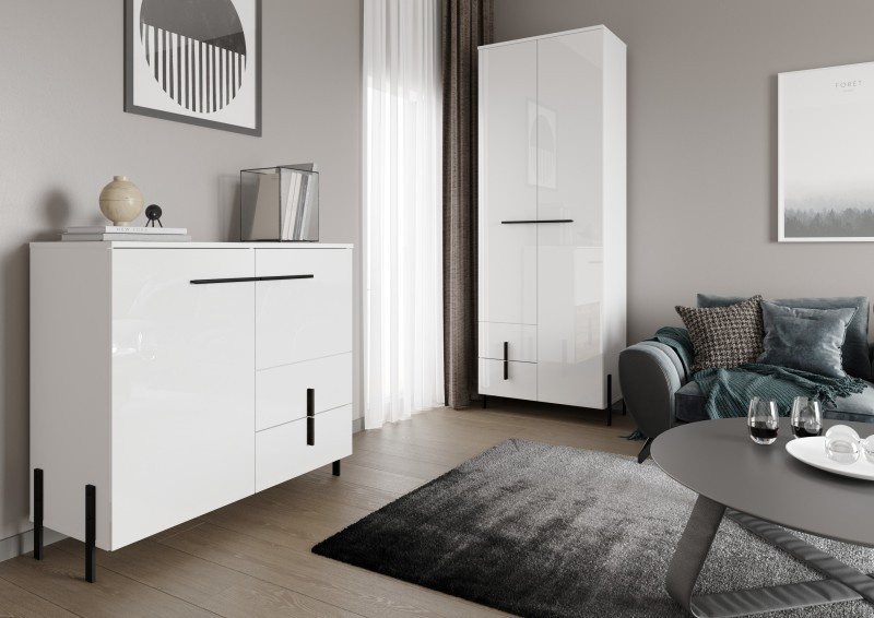 Komoda JUSTINE 2D2S, biela/biely lesk