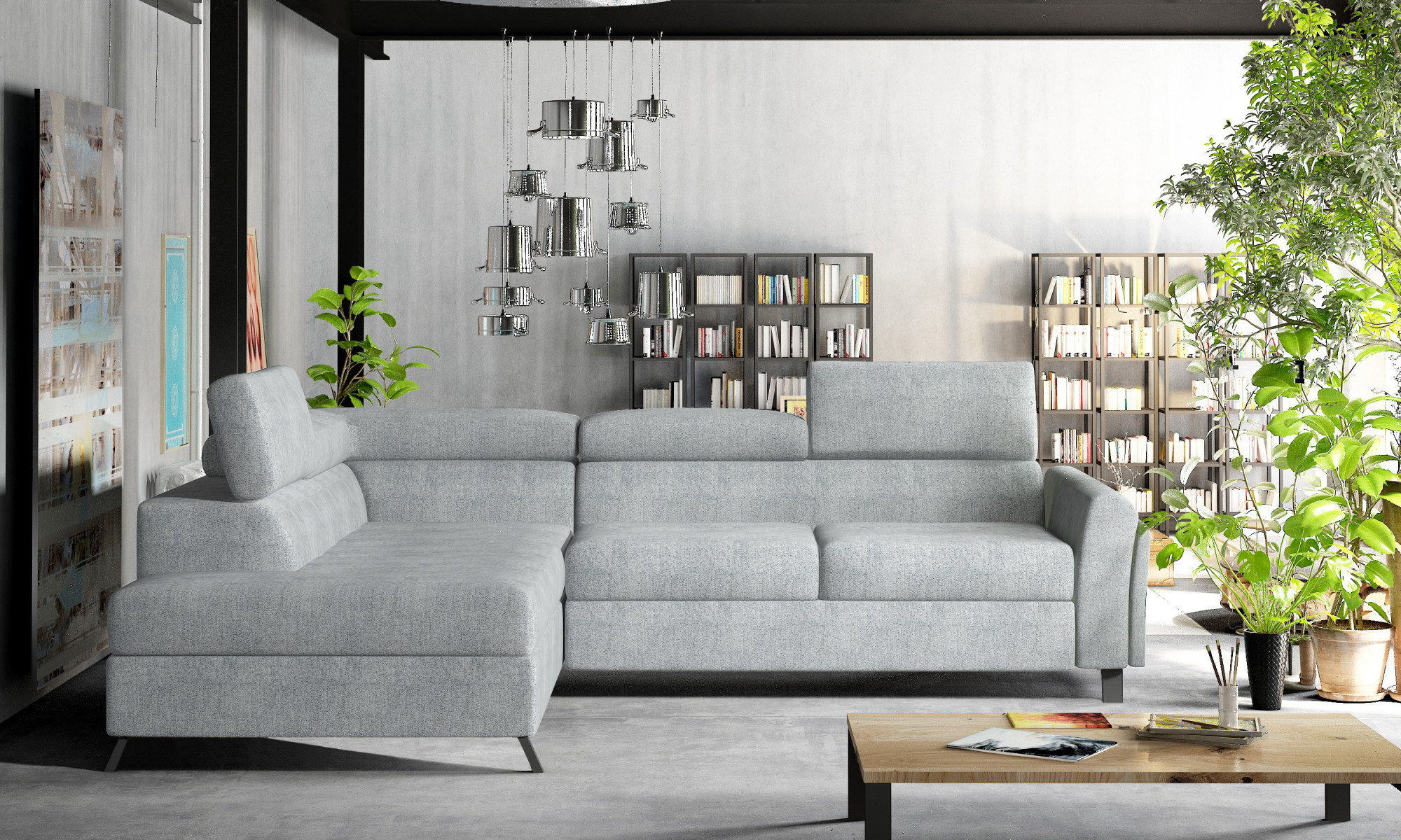 Kairos je klasická, ale pohodlná a elegantná rohová pohovka v tvare L, merajúca 265 x 197 x 95 cm. Jeho charakteristické črty zahŕňajú: stabilnú konštrukciu, tlmený vzhľad, čalúnené operadlo, tvarované operadlo a podrúčky, pohyblivé opierky hlavy a hlboké, mäkké sedadlo vyrobené z inovatívnej peny T30 a HR, ktoré sú odolné voči deformácii a poškodeniu. Zabezpečujú tiež správne vyrovnanie tela počas odpočinku. Rohová pohovka Kairos je multifunkčný kus nábytku, pretože poskytuje maximálnu úroveň pohodlia nielen počas dňa, ale aj v noci. Po rozložení pohovky pomocou intuitívneho a jednoduchého mechanizmu delfín získame spaciu plochu o rozmeroch 125 x 190 cm a priestranný, hlboký úložný priestor na lôžkoviny umiestnený v otomane. Ak hľadáte funkčný, ale zároveň klasický a elegantný kus nábytku - voľba je jednoduchá - rohová pohovka Kairos bude odpoveďou na všetky vaše požiadavky a očakávania.