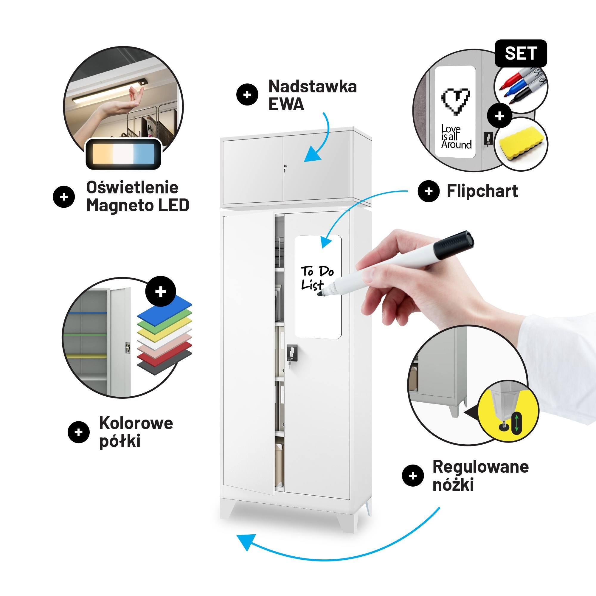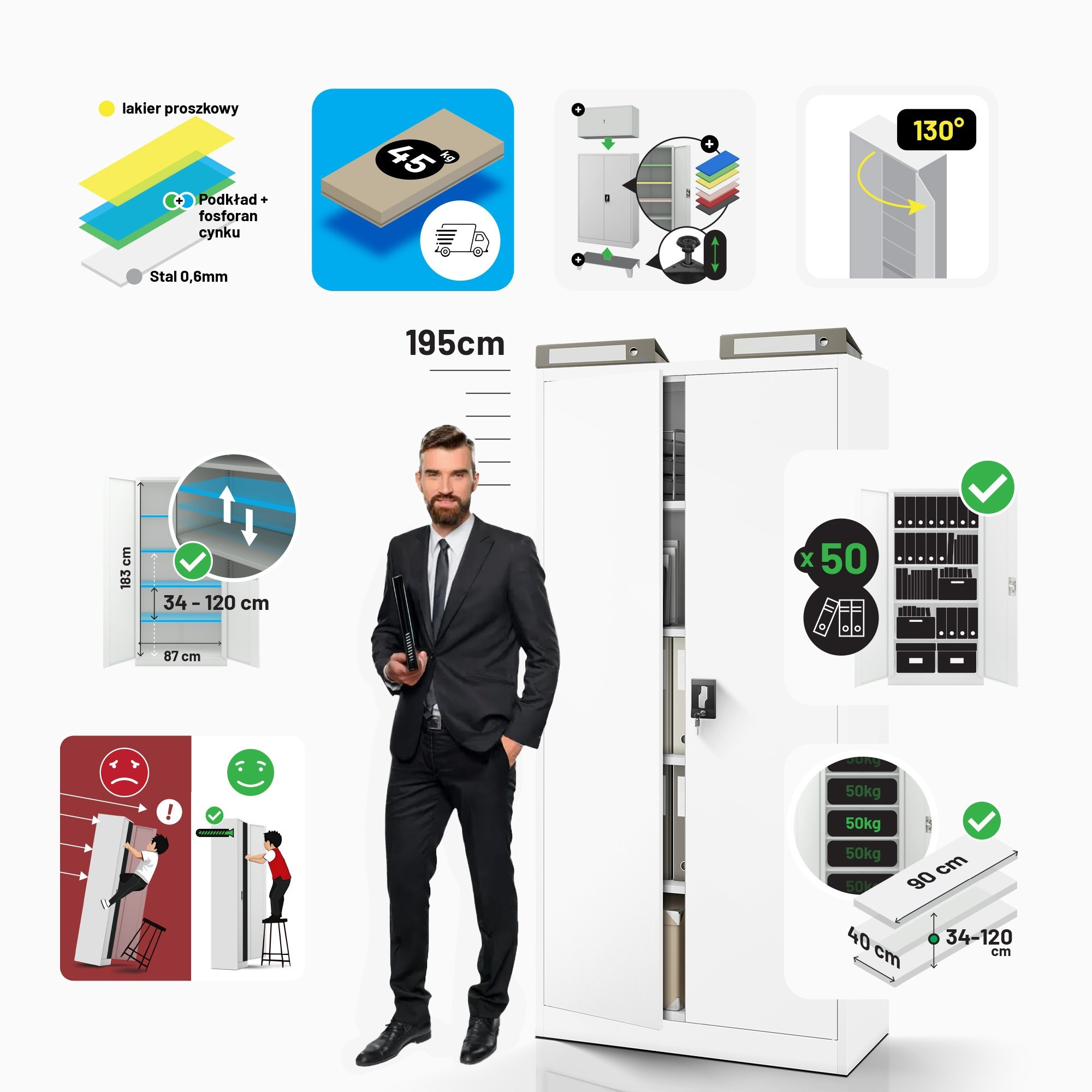 - Kancelárska skriňa: Usporiadajte si dokumenty, zakladače a kancelárske potreby s maximálnou efektivitou.