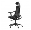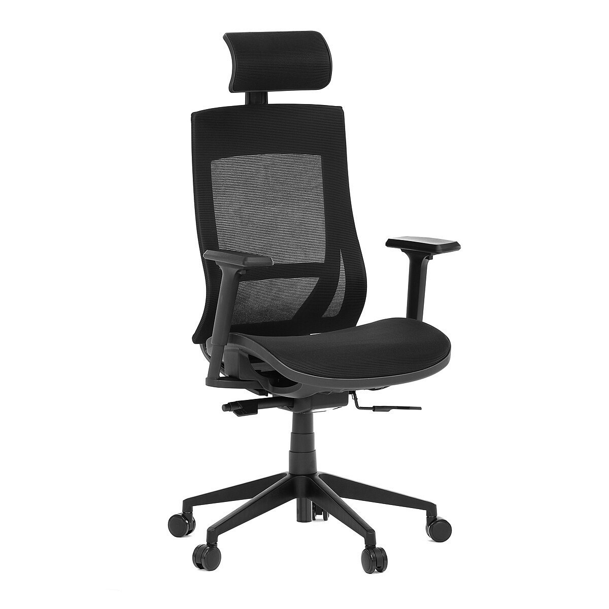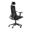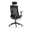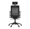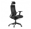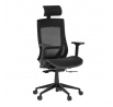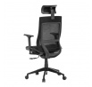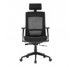 Kancelárska stolička, čierna sieťovina MESH, lanový vlnovec., plastový kríž, 2D podrúčky, kolieska na tvrdé podlahy