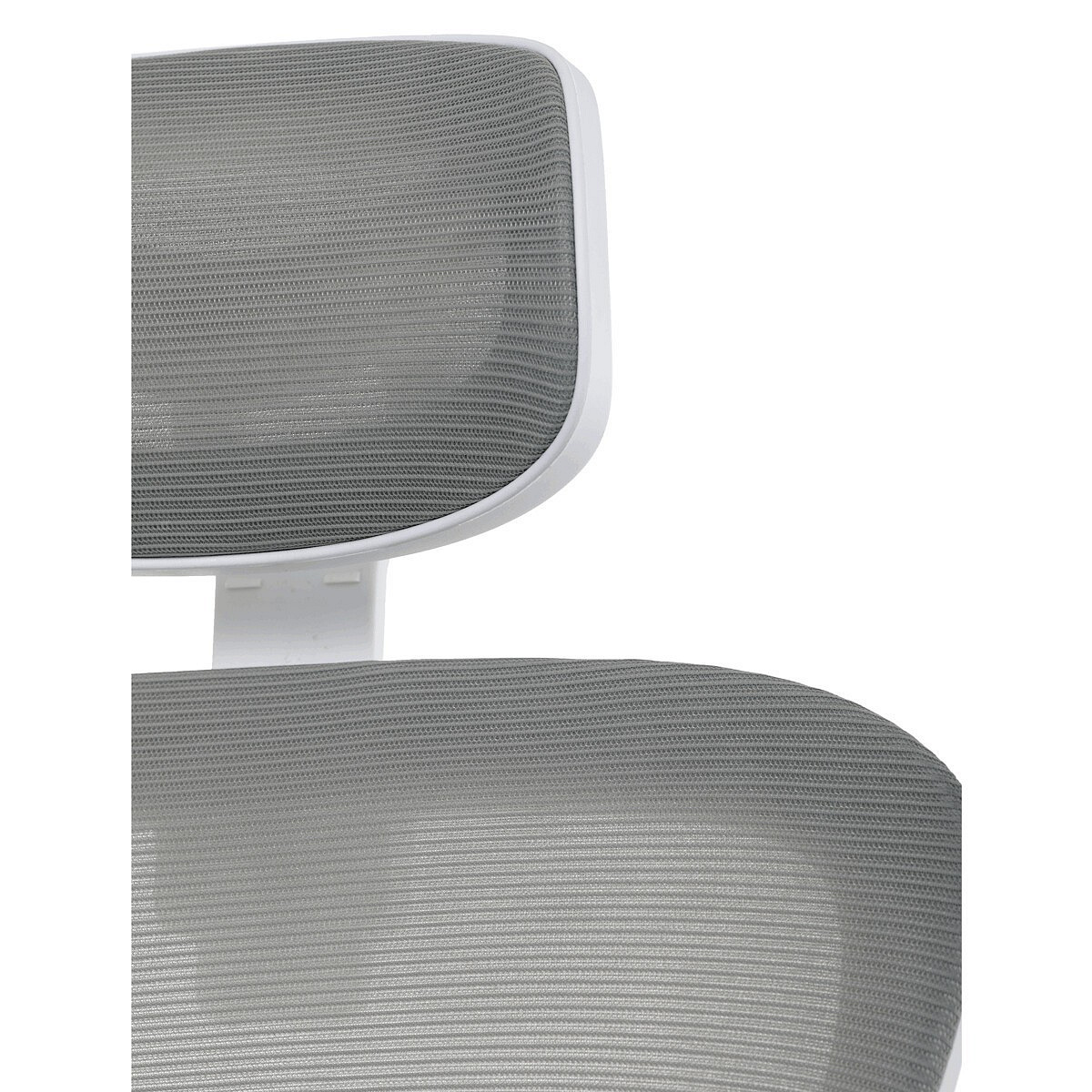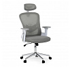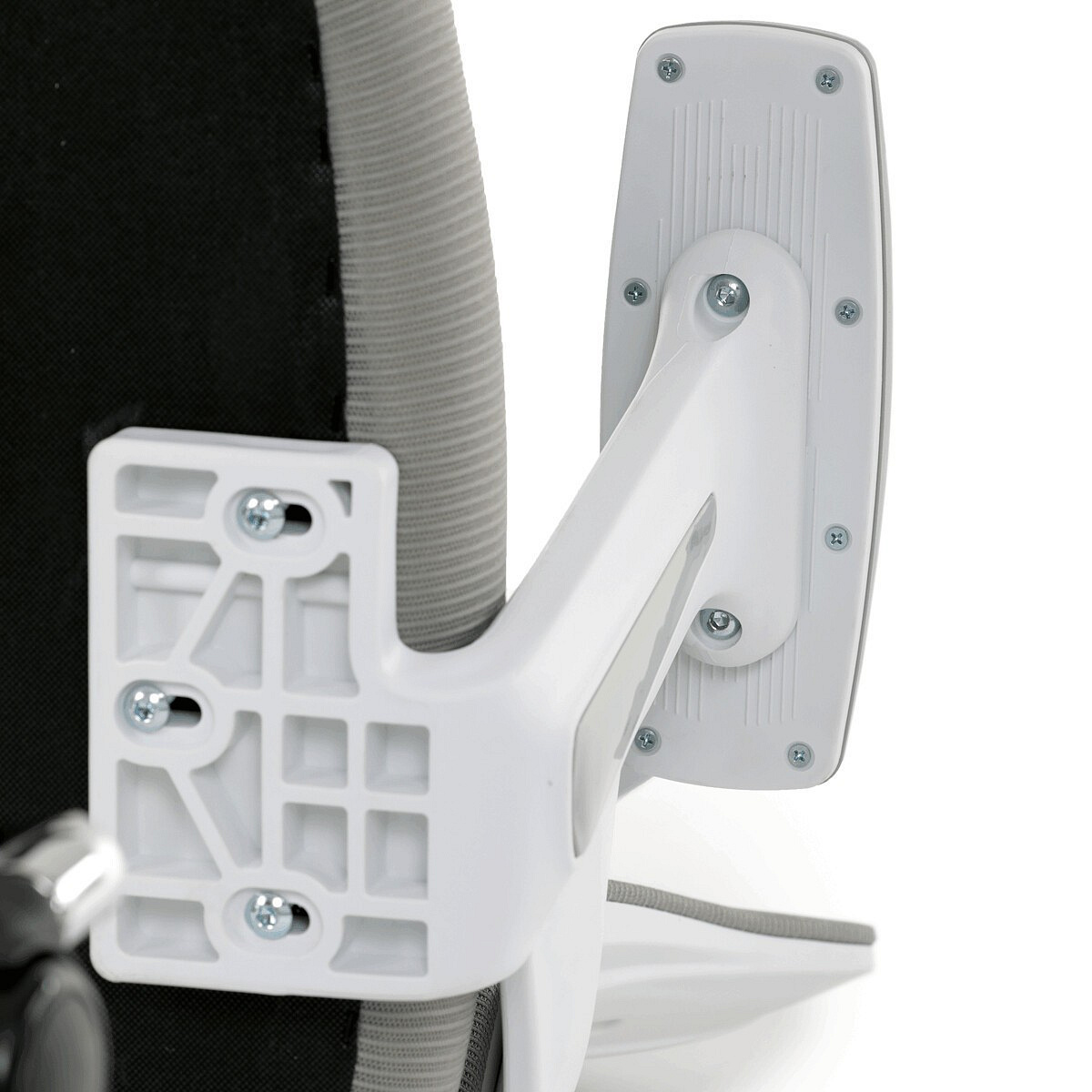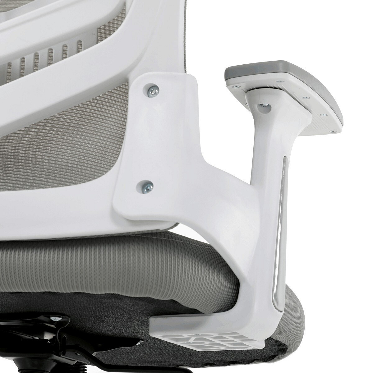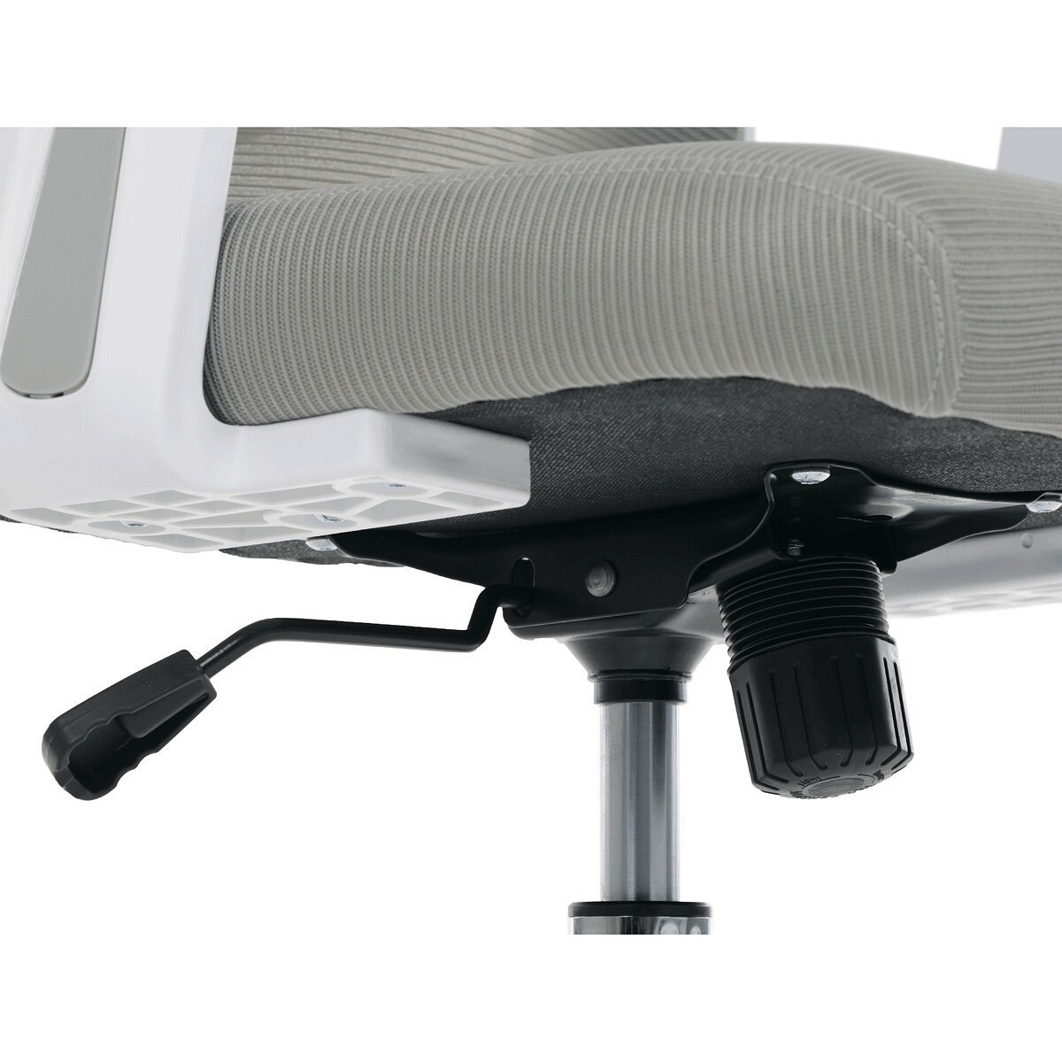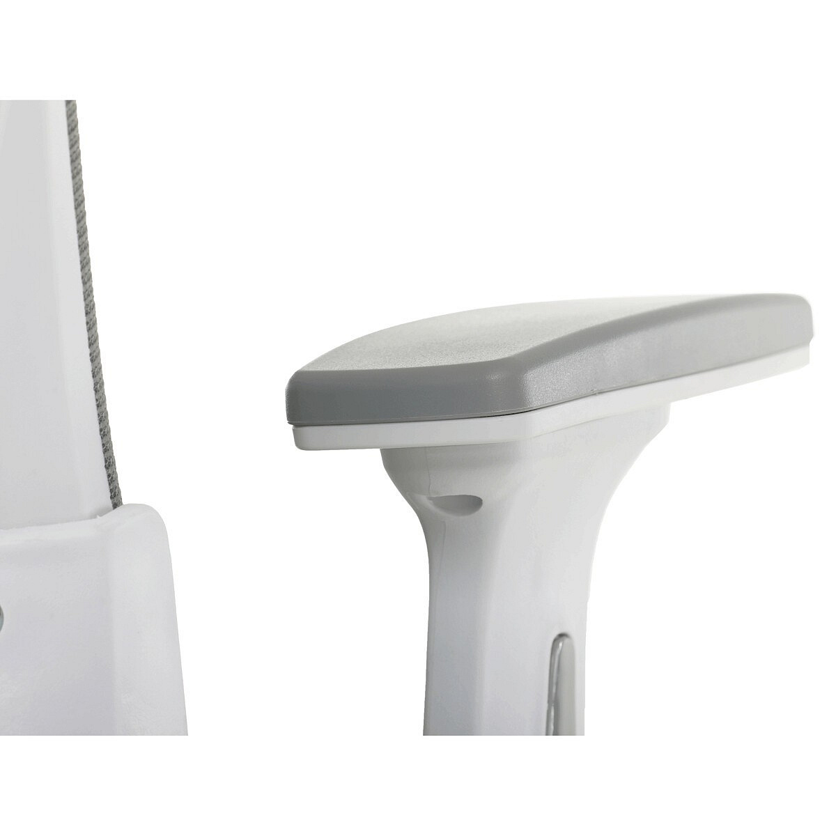 Kancelárska stolička, sivá sieťovina, biely plast, kolieska na tvrdé podlahy, 2D podrúčky
