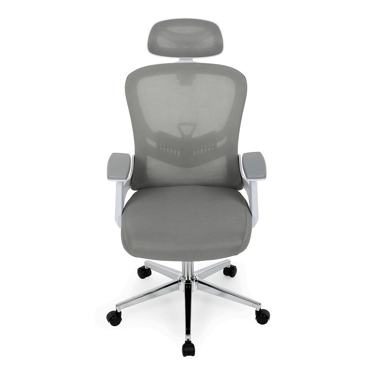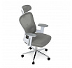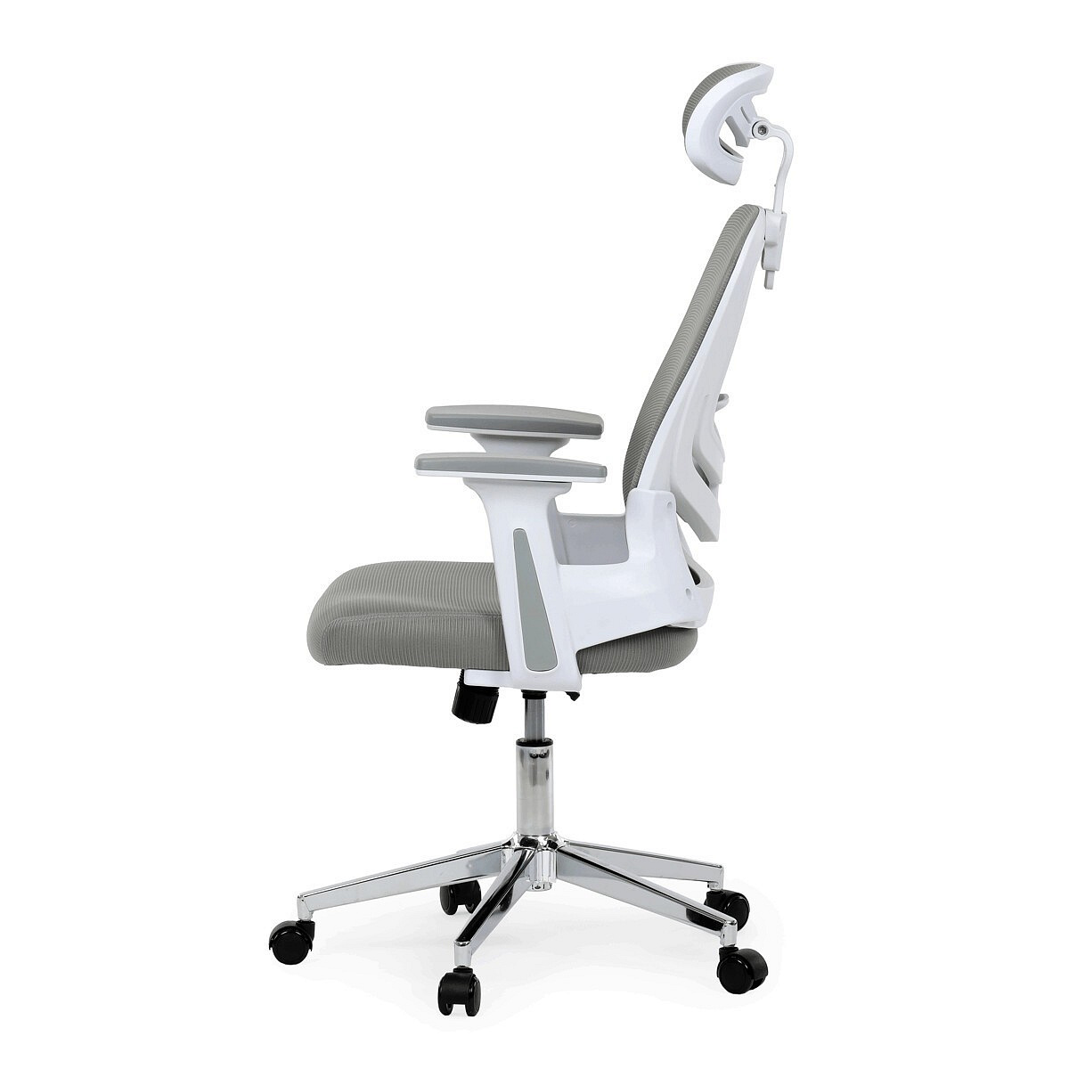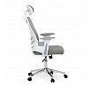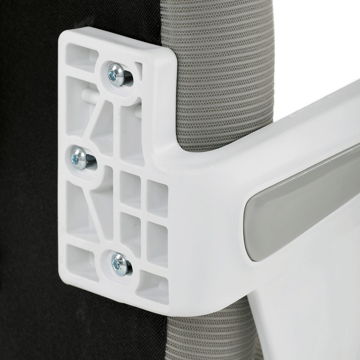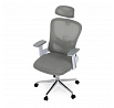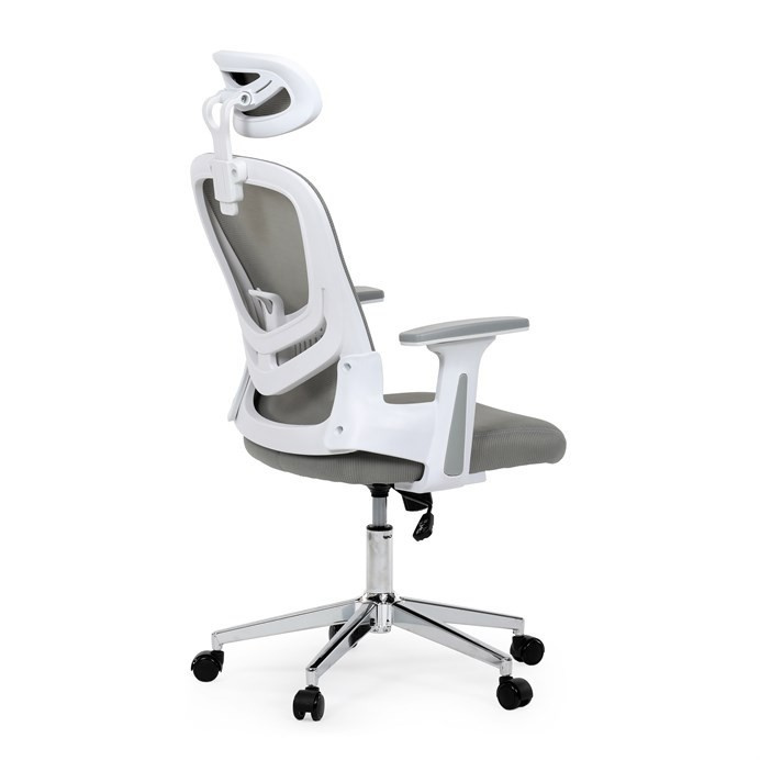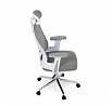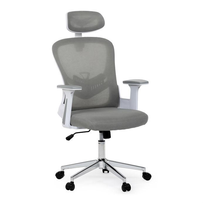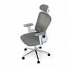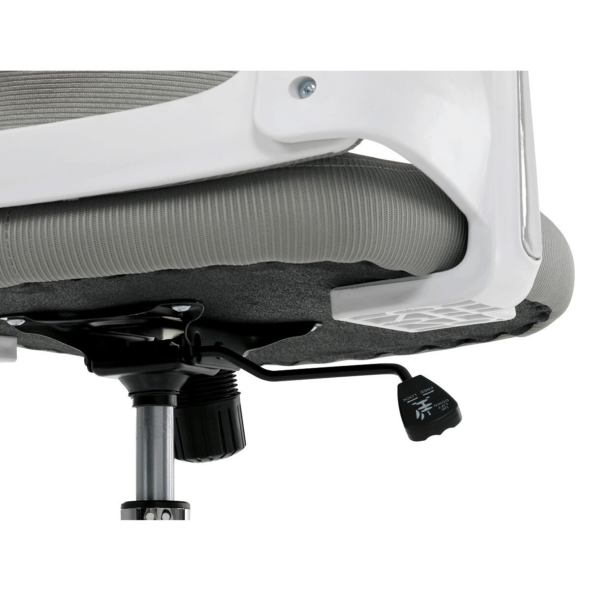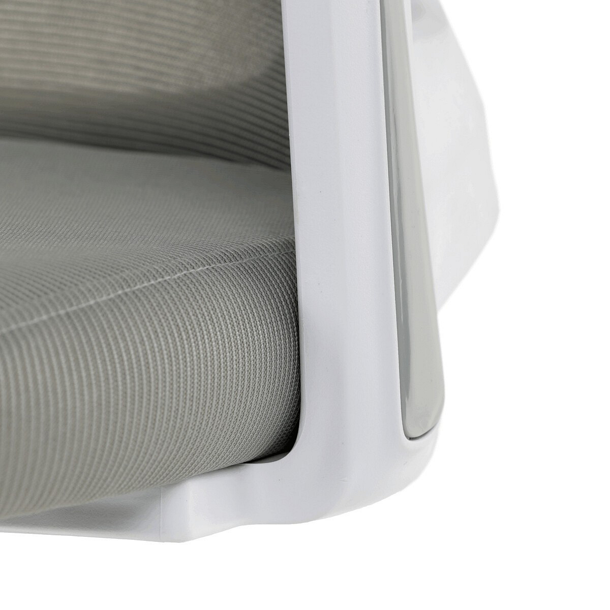 Kancelárska stolička, sivá sieťovina, biely plast, kolieska na tvrdé podlahy, 2D podrúčky