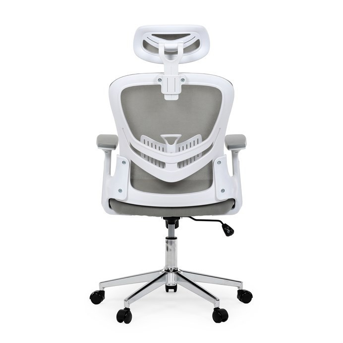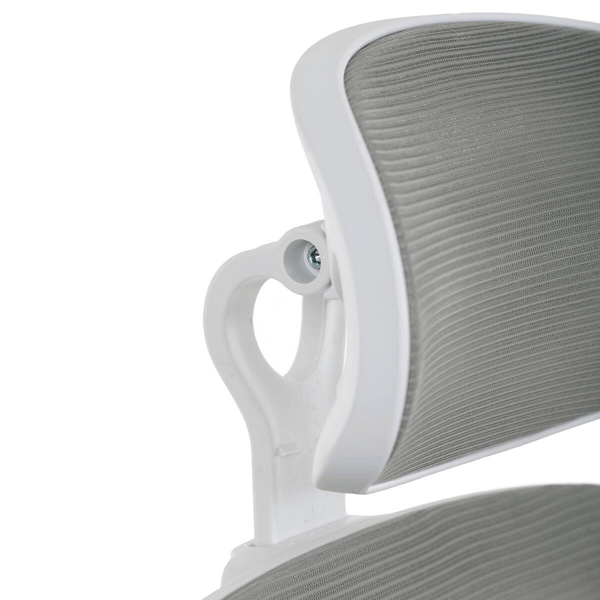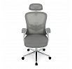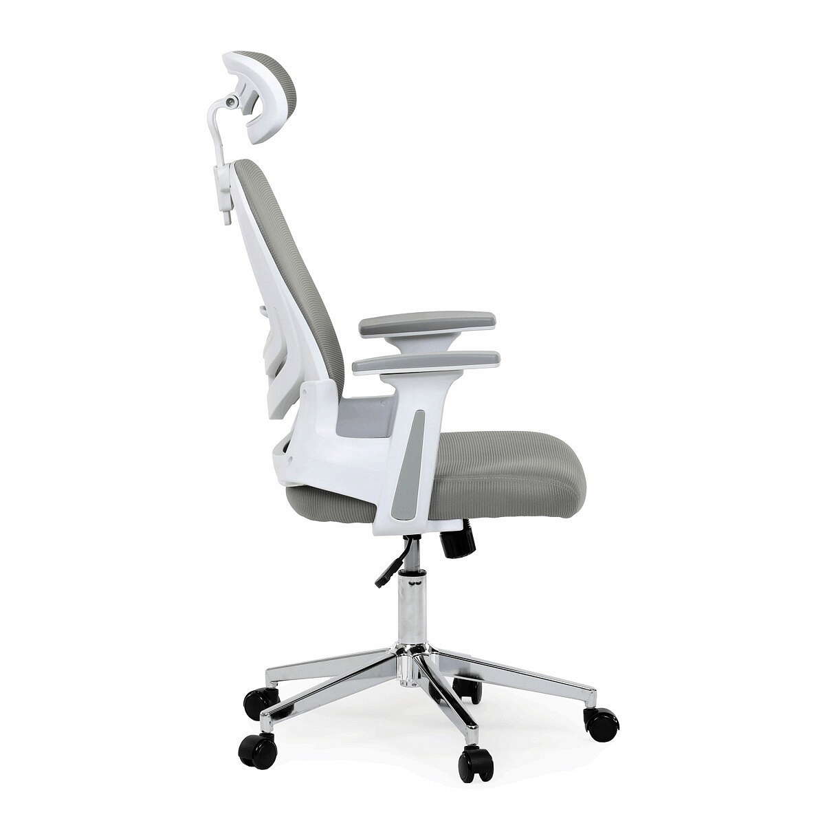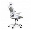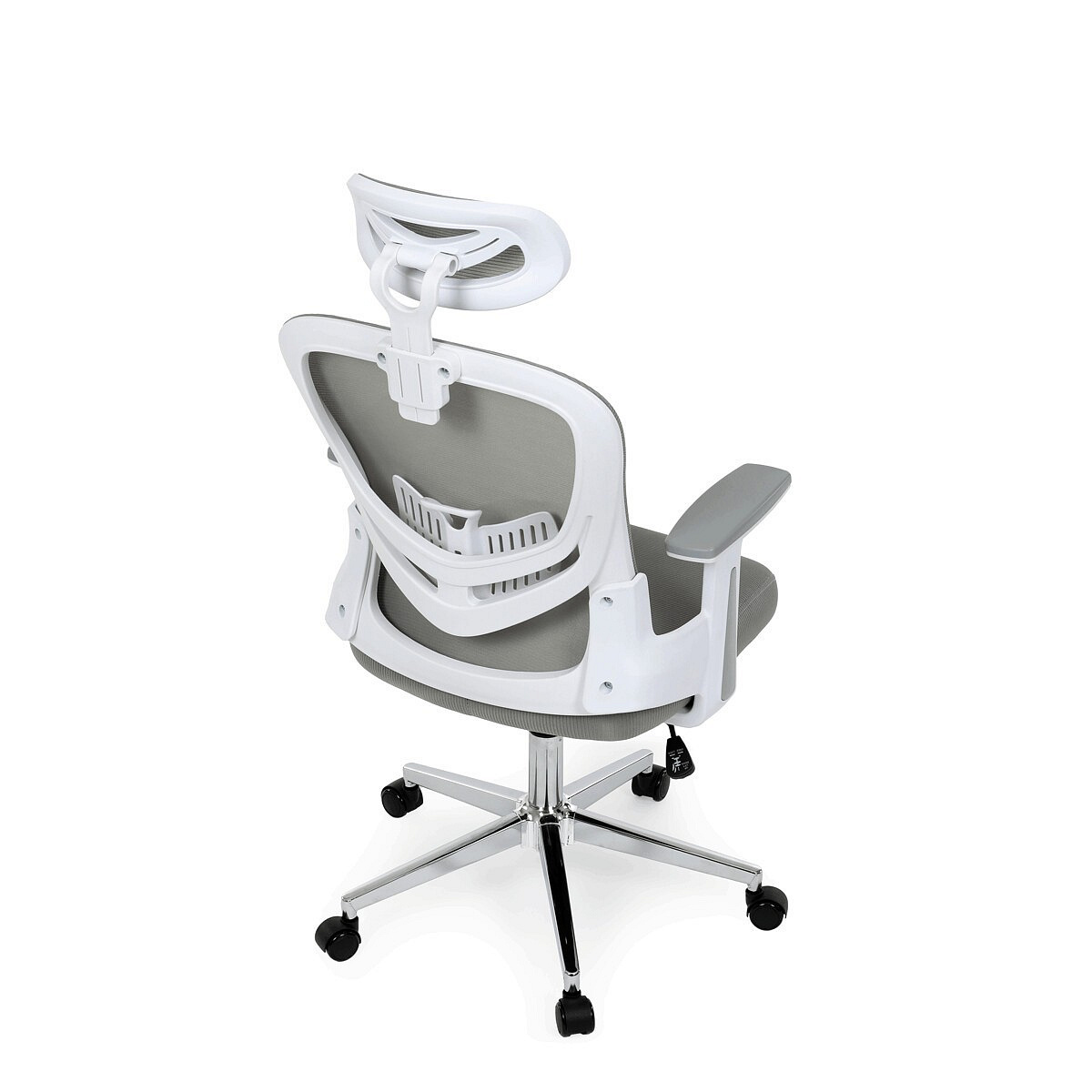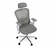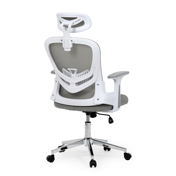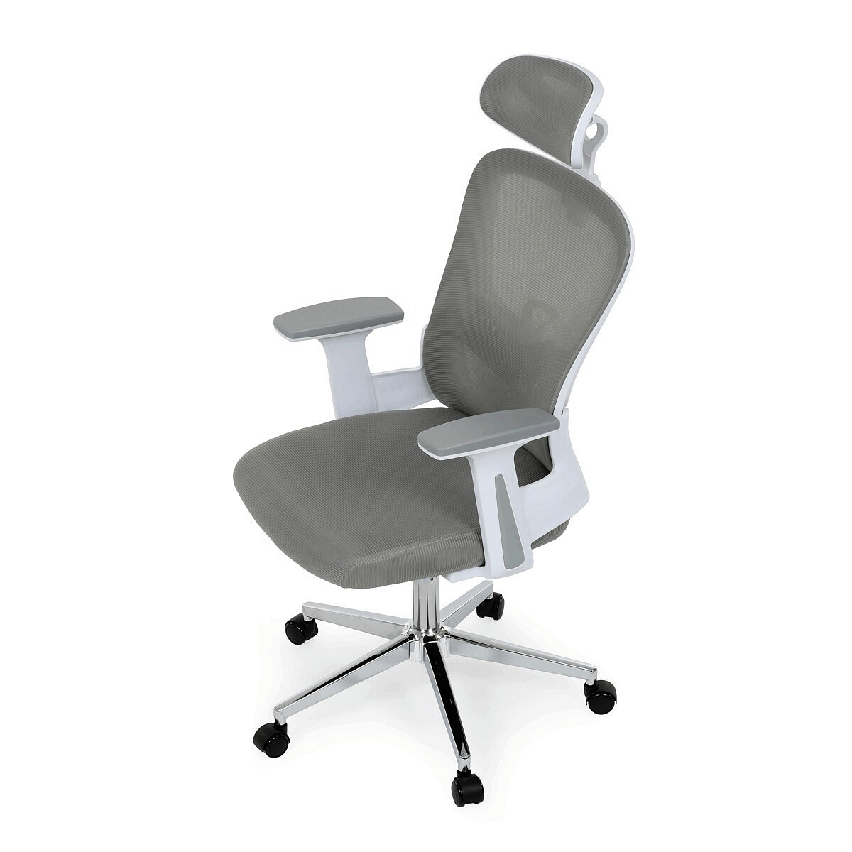 Kancelárska stolička, sivá sieťovina, biely plast, kolieska na tvrdé podlahy, 2D podrúčky