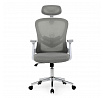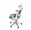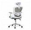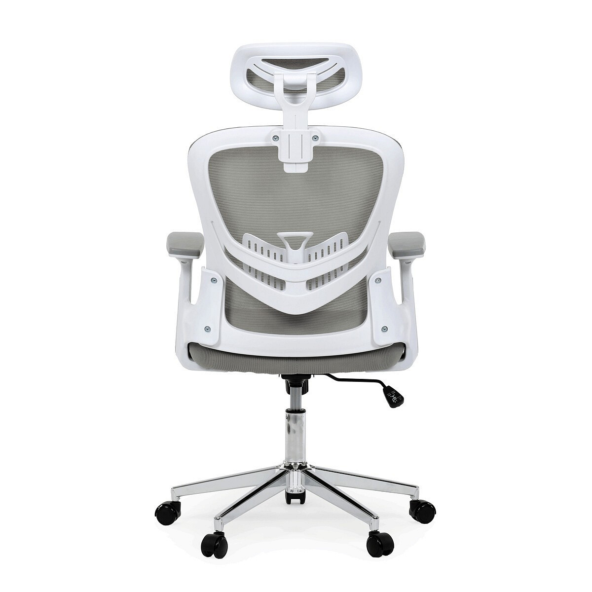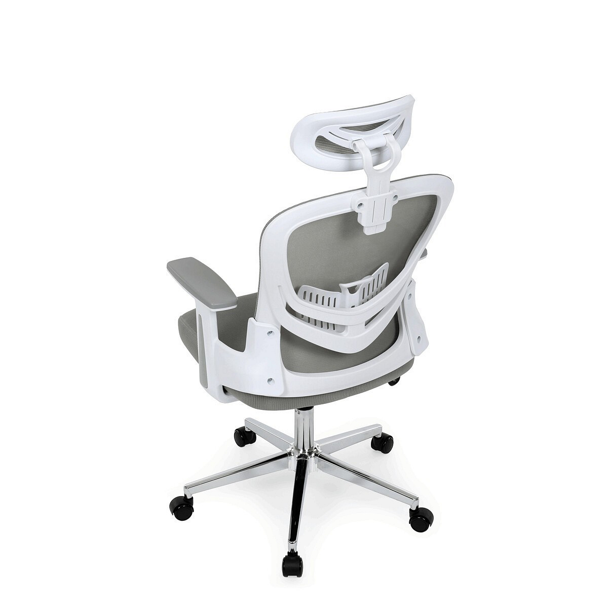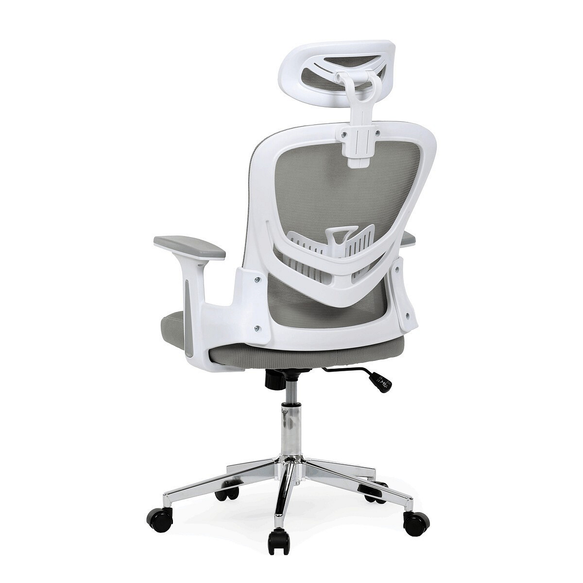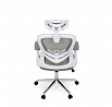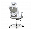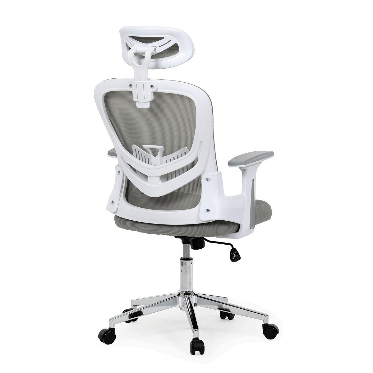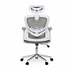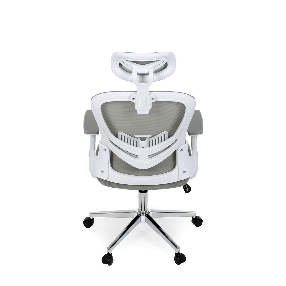 Kancelárska stolička, sivá sieťovina, biely plast, kolieska na tvrdé podlahy, 2D podrúčky