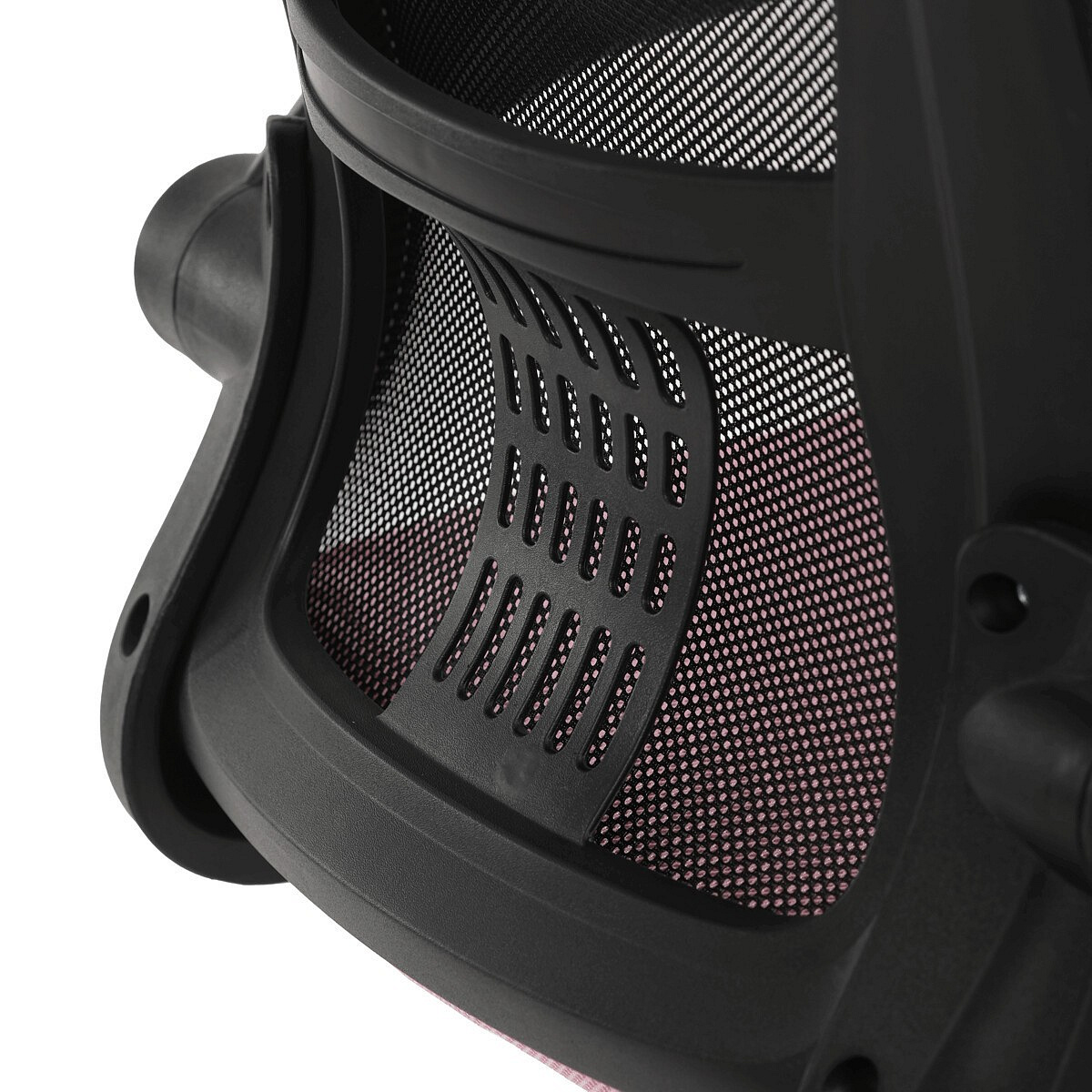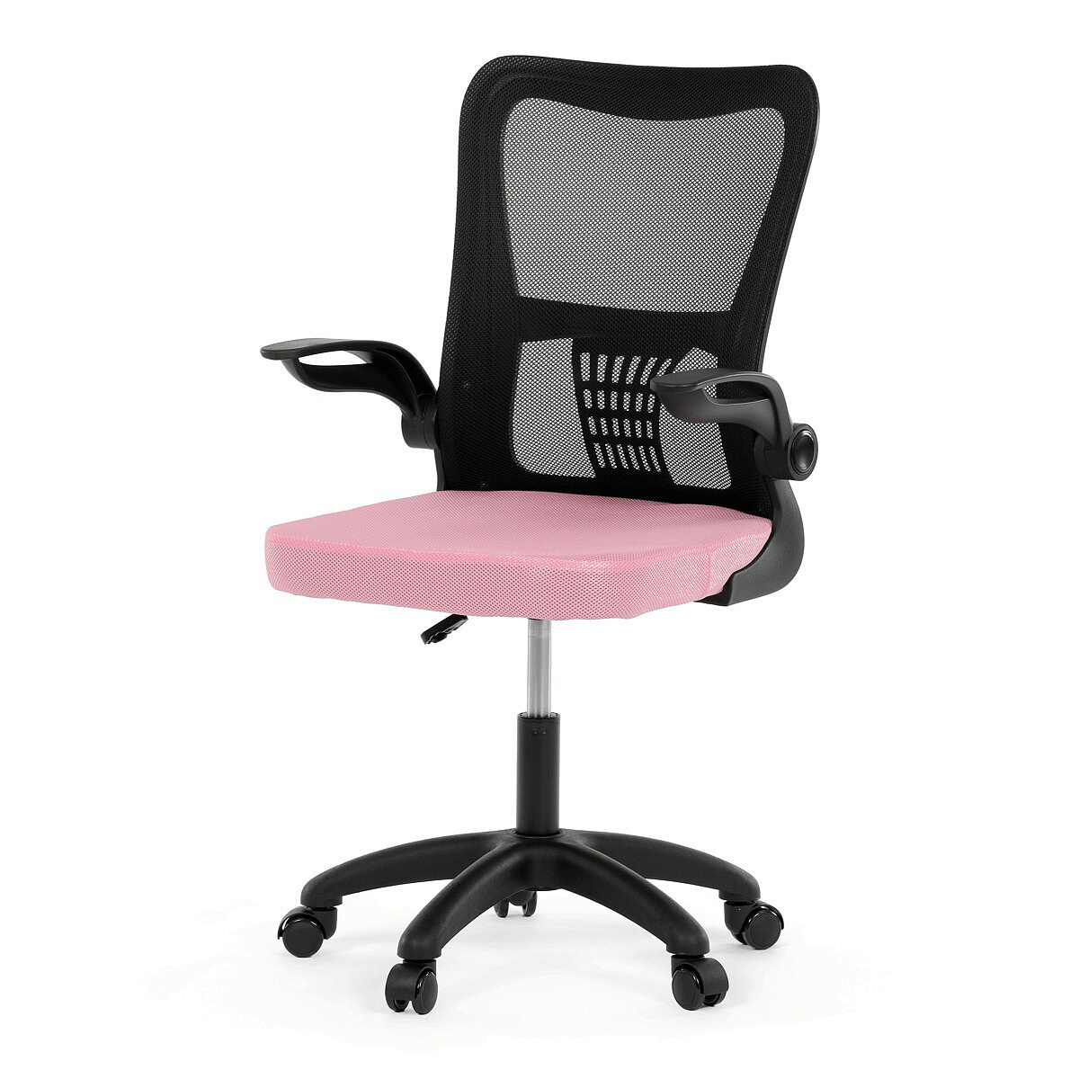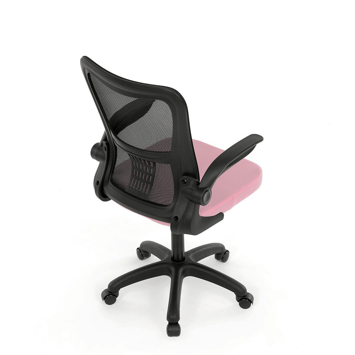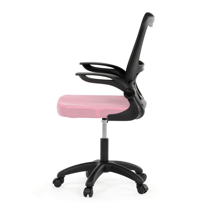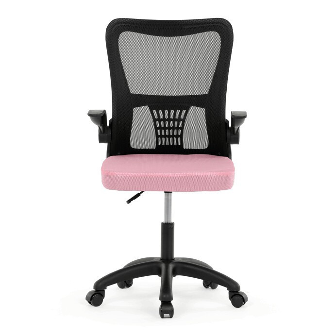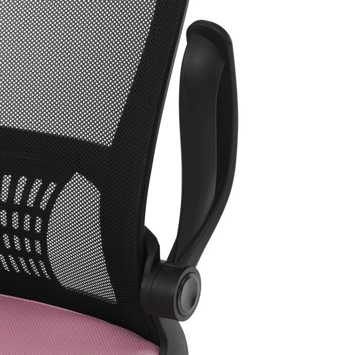 Kancelářská židle s označením KA-K2006 PINK kombinuje moderní design s funkčností vhodnou pro každodenní práci. Opěrák je vyroben z černé prodyšné síťoviny, která zajišťuje optimální cirkulaci vzduchu a podporuje pohodlí při delším sezení. Sedák je čalouněný růžovou látkou s dostatečnou výplní pro komfortní posed. Odklápěcí plastové područky umožňují snadné přizpůsobení pracovnímu prostoru a zvyšují flexibilitu používání. Houpací mechanismus s možností nastavení výšky sedáku přispívá k ergonomii a individuálnímu nastavení. Plastový kříž zajišťuje stabilitu a kolečka jsou určena pro tvrdé povrchy, což umožňuje snadný pohyb bez poškození podlahy. Židle je vhodná pro uživatele hledající kombinaci praktičnosti a svěžího barevného akcentu.
