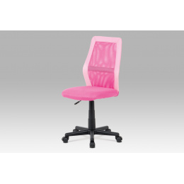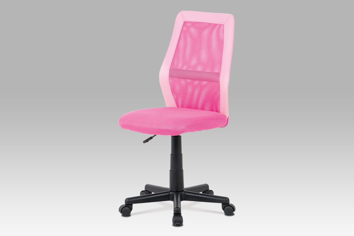 Štýlová ružová detská kancelárska stolička je výškovo nastaviteľná, má zosilnený čierny plastový kríž a plastové kolieska vhodné na koberec. Sedadlo čalúnené ružovou látkou MESH je vďaka polstrovaniu mimoriadne pohodlné. Operadlo s výstuhou v bedrovej časti je vyrobené z priedušnej sieťoviny MESH a čalúnené svetloružovou ekokožou. Stolička má nosnosť až 80 kg.