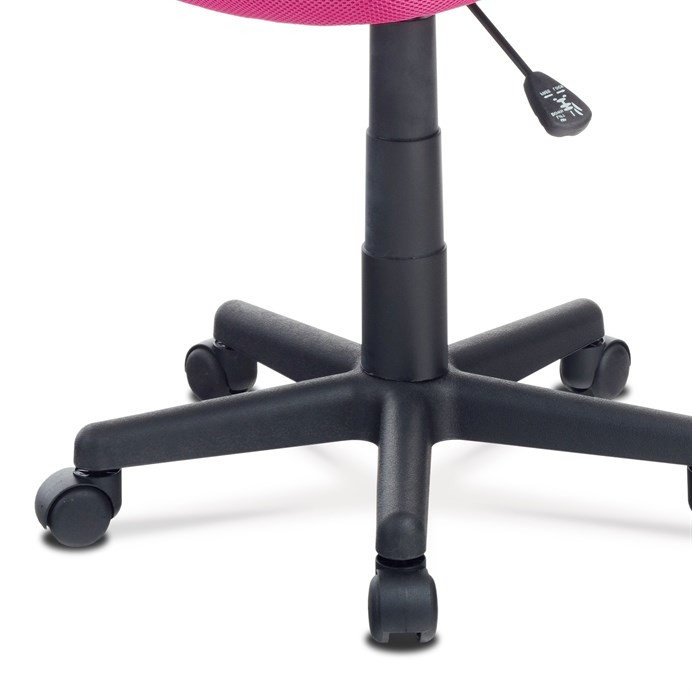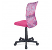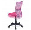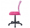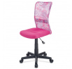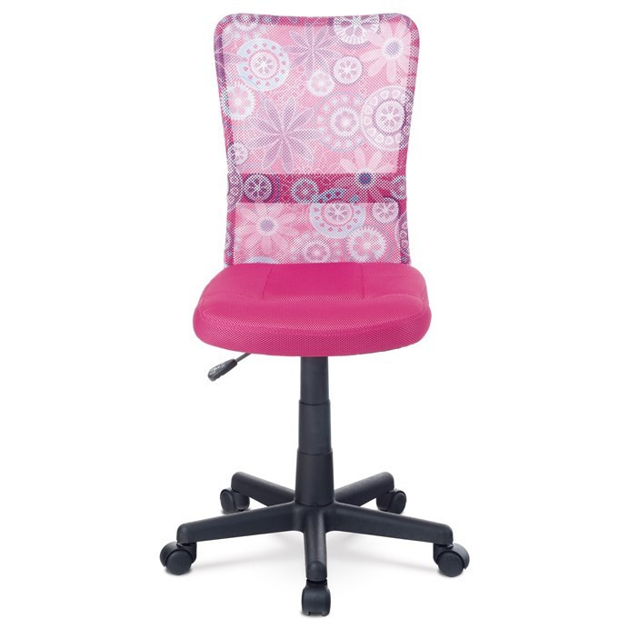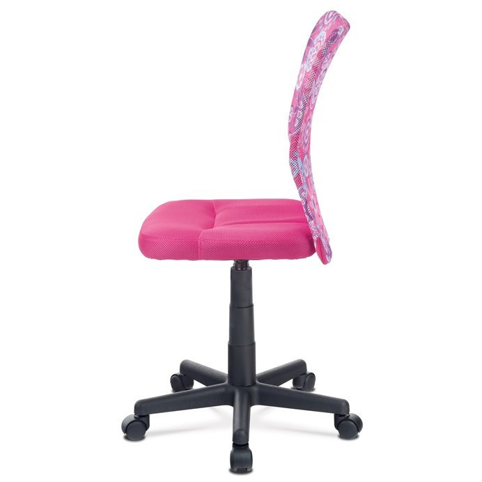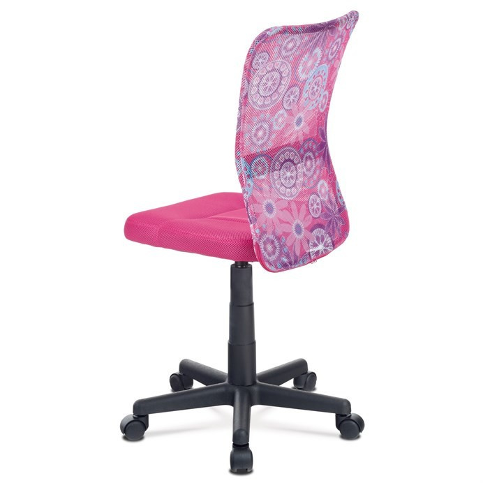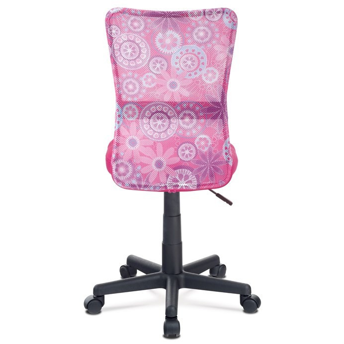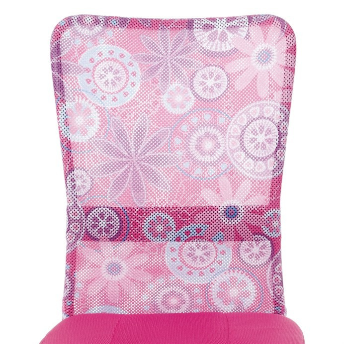 Detská kancelárska stolička čalúnená látkou MESH v štýlovej ružovej farbe, operadlo s motívom. Vďaka plynovému piestu je stolička výškovo nastaviteľná. Stolička má aj plastový kríž s plastovými kolieskami vhodnými na koberce. Nosnosť 60 kg.