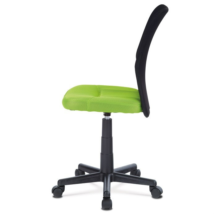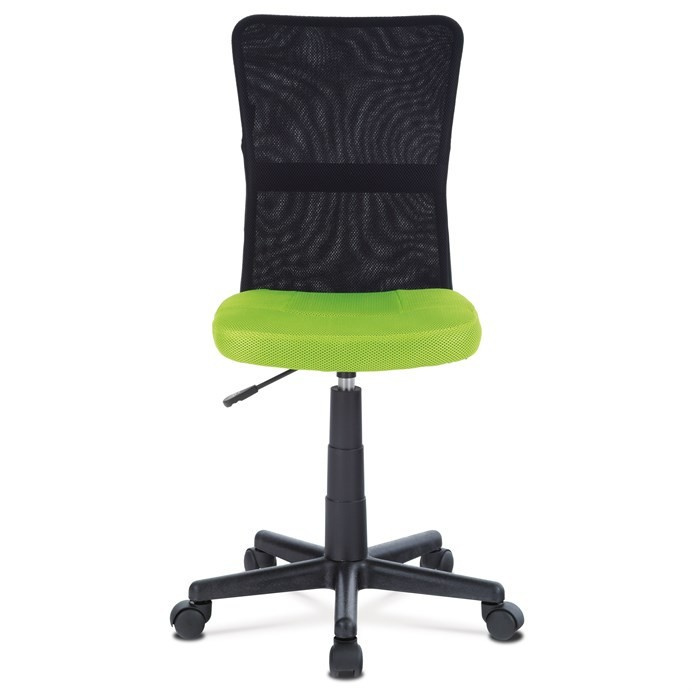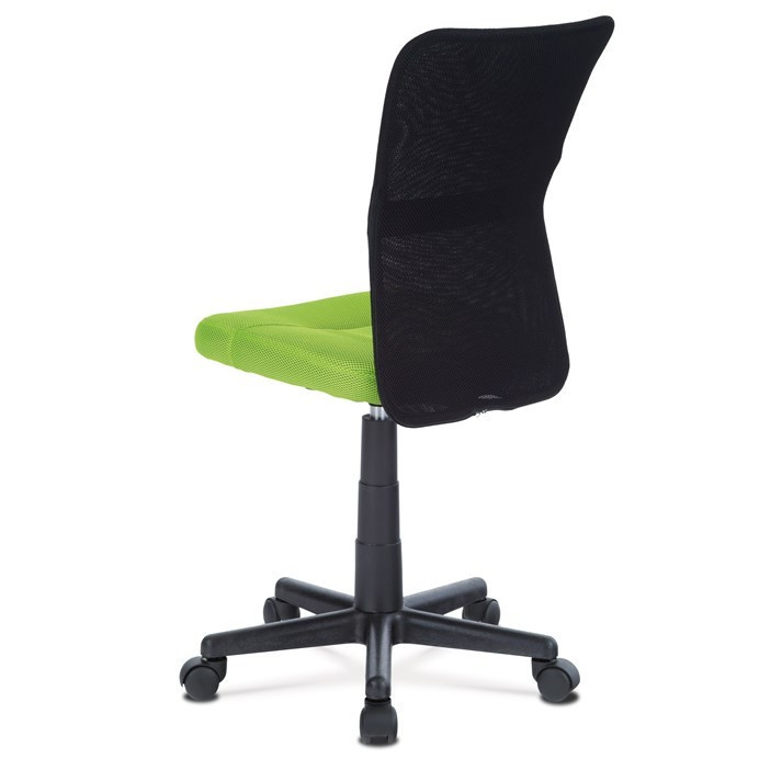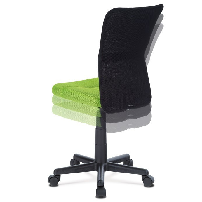 Detská kancelárska stolička čalúnená látkou MESH v štýlovej kombinácii zelenej a čiernej farby. Vďaka plynovému piestu je stolička výškovo nastaviteľná. Stolička má aj plastový kríž s plastovými kolieskami vhodnými na koberce. Nosnosť 60 kg.