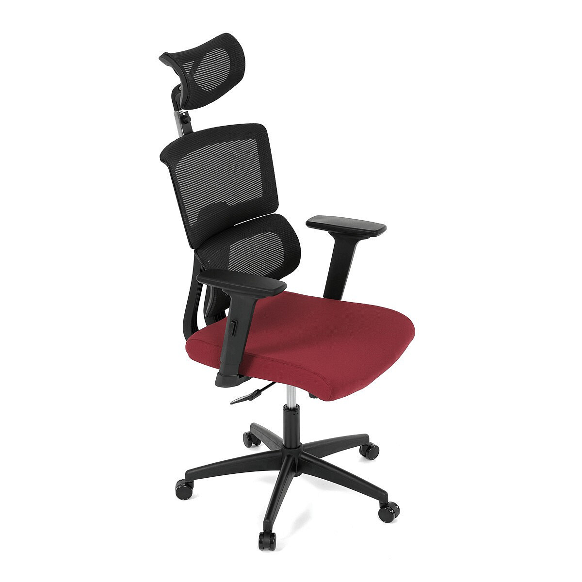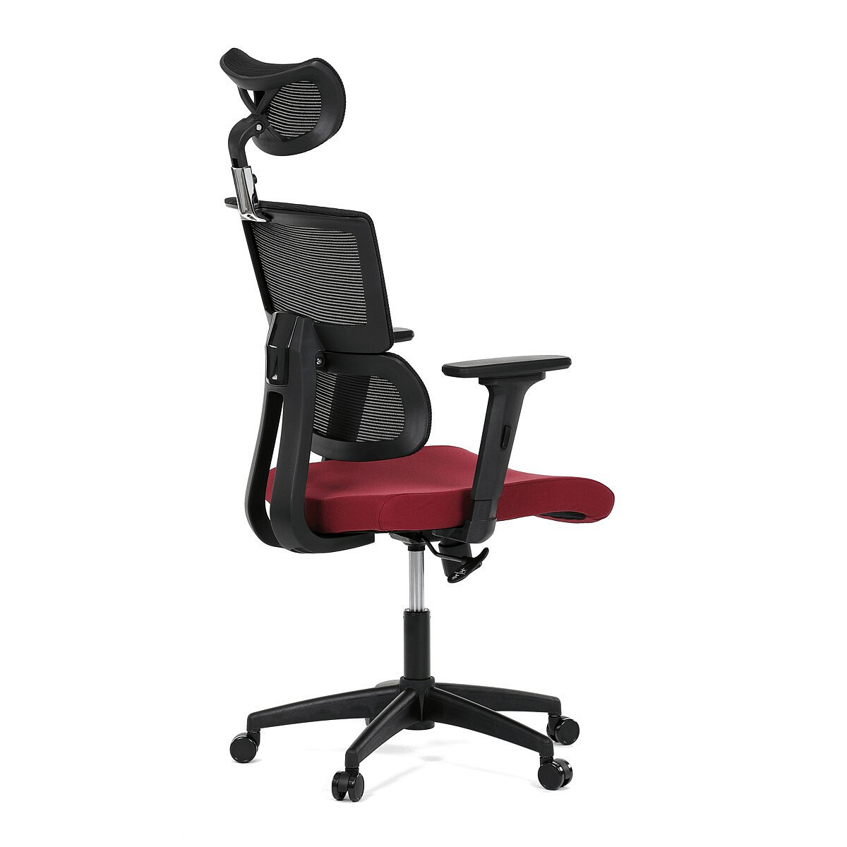 Kancelárske kreslo, čalúnenie bordová látka a čierna sieťovina MESH, hojdací mech.