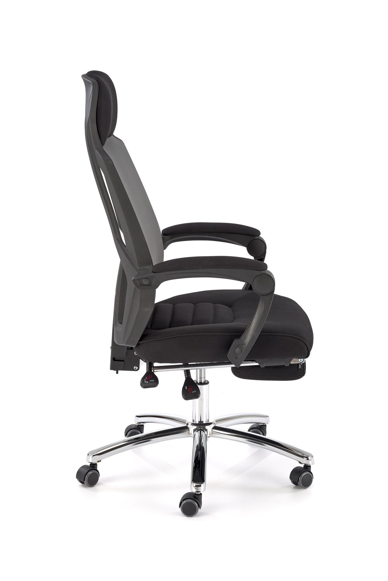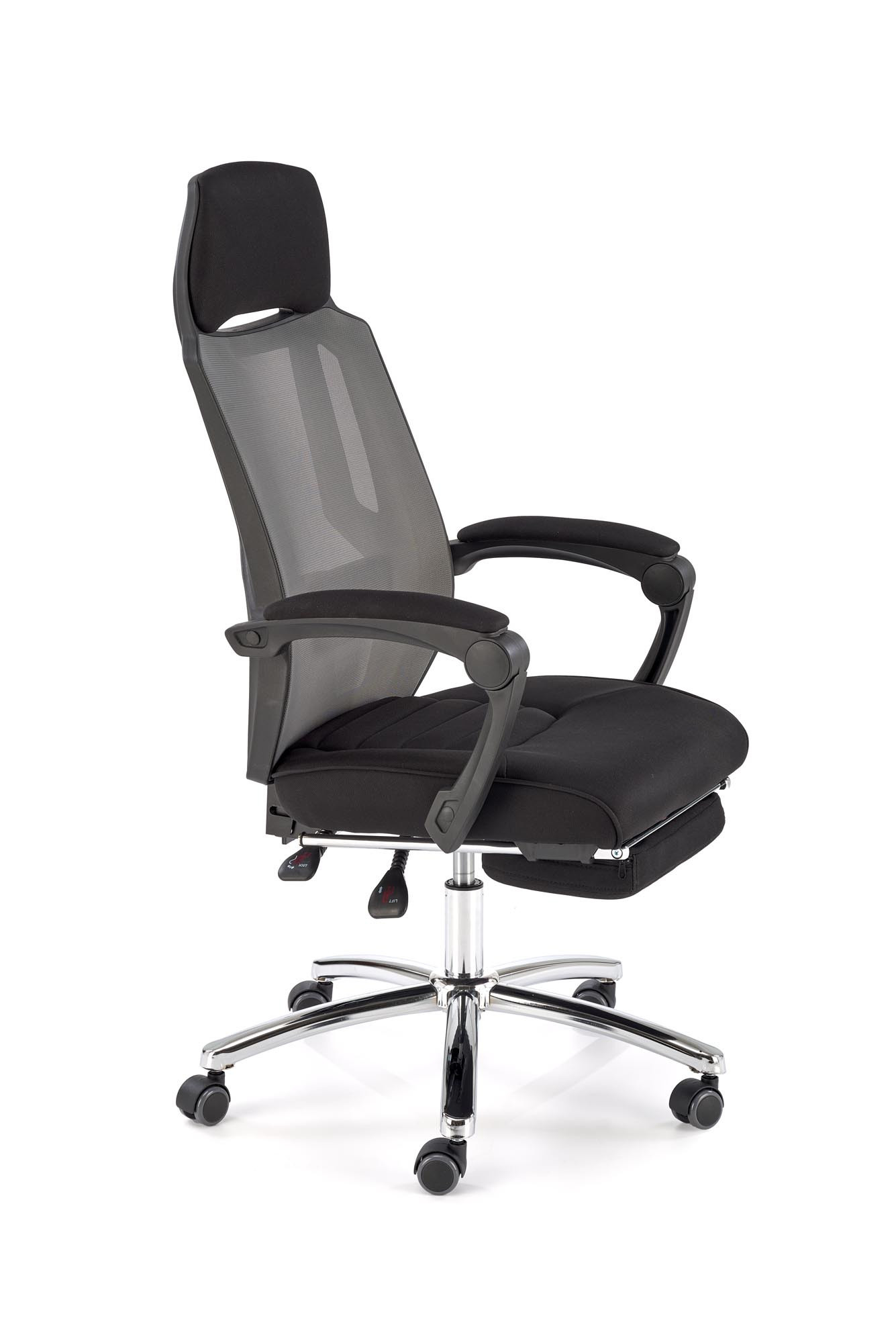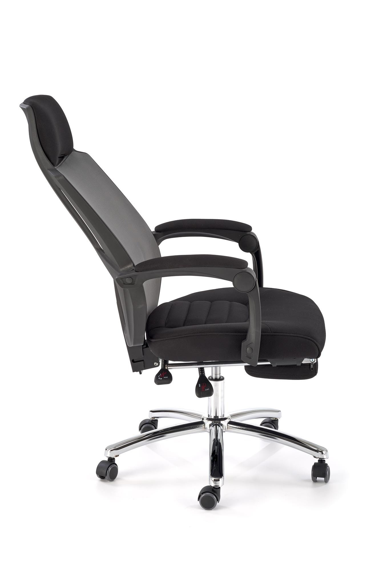 rozmery: 61/60/116-123/48-55 cm, mechanizmus TILT / výsuvná opierka na nohy, textilná membrána / sieťovina, farba: čierna a sivá