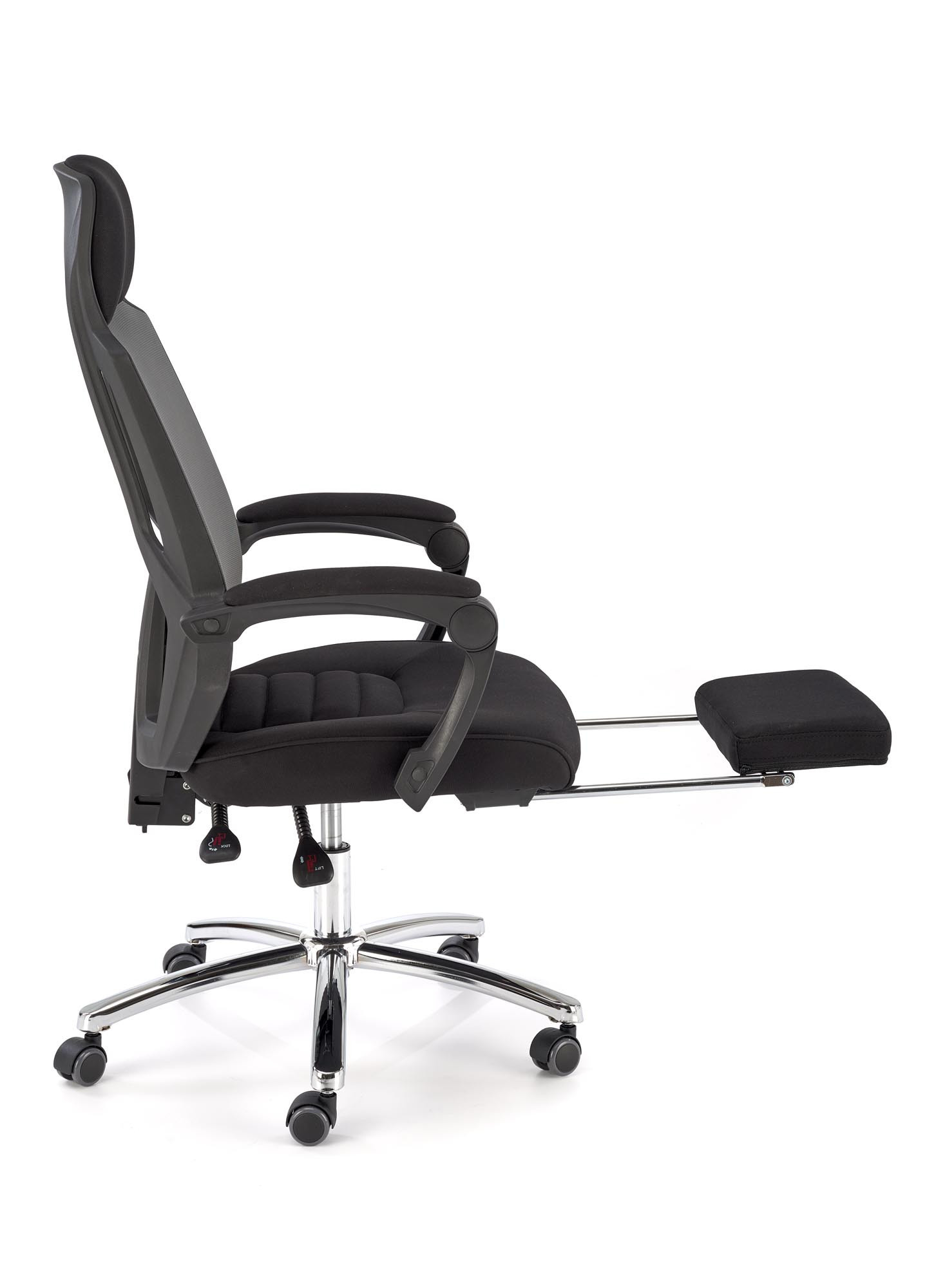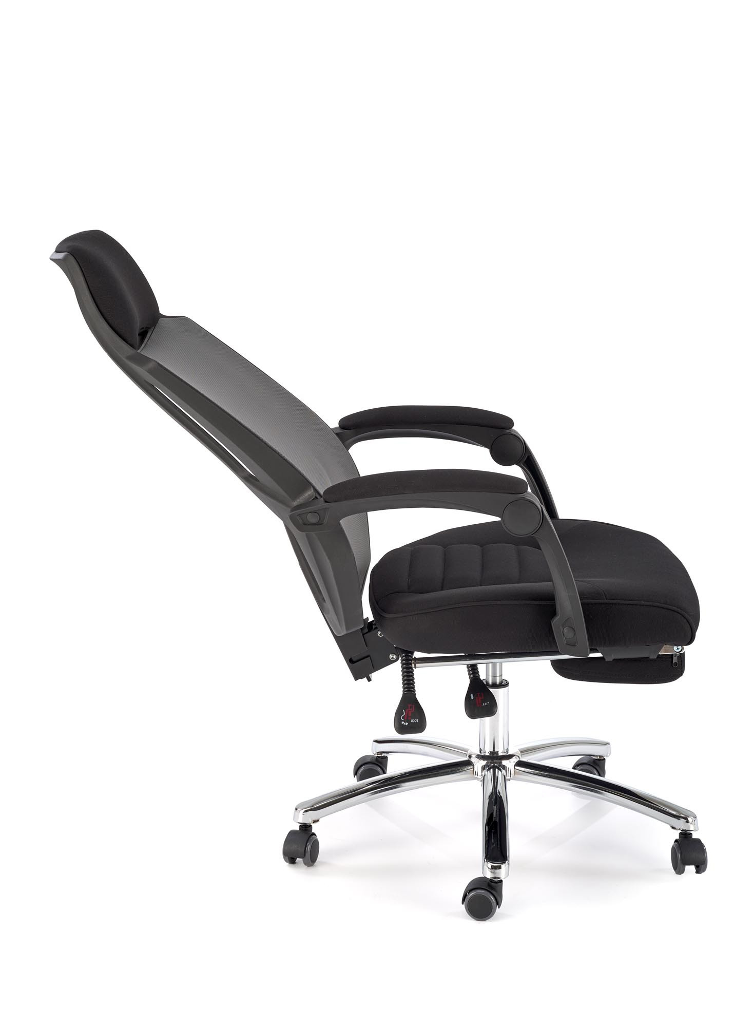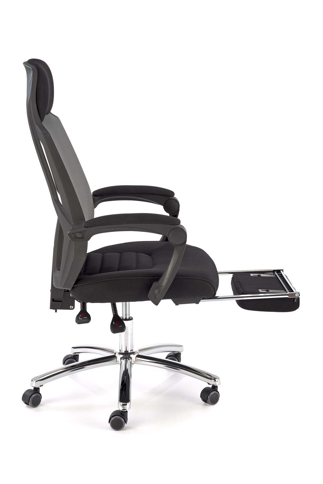 rozmery: 61/60/116-123/48-55 cm, mechanizmus TILT / výsuvná opierka na nohy, textilná membrána / sieťovina, farba: čierna a sivá