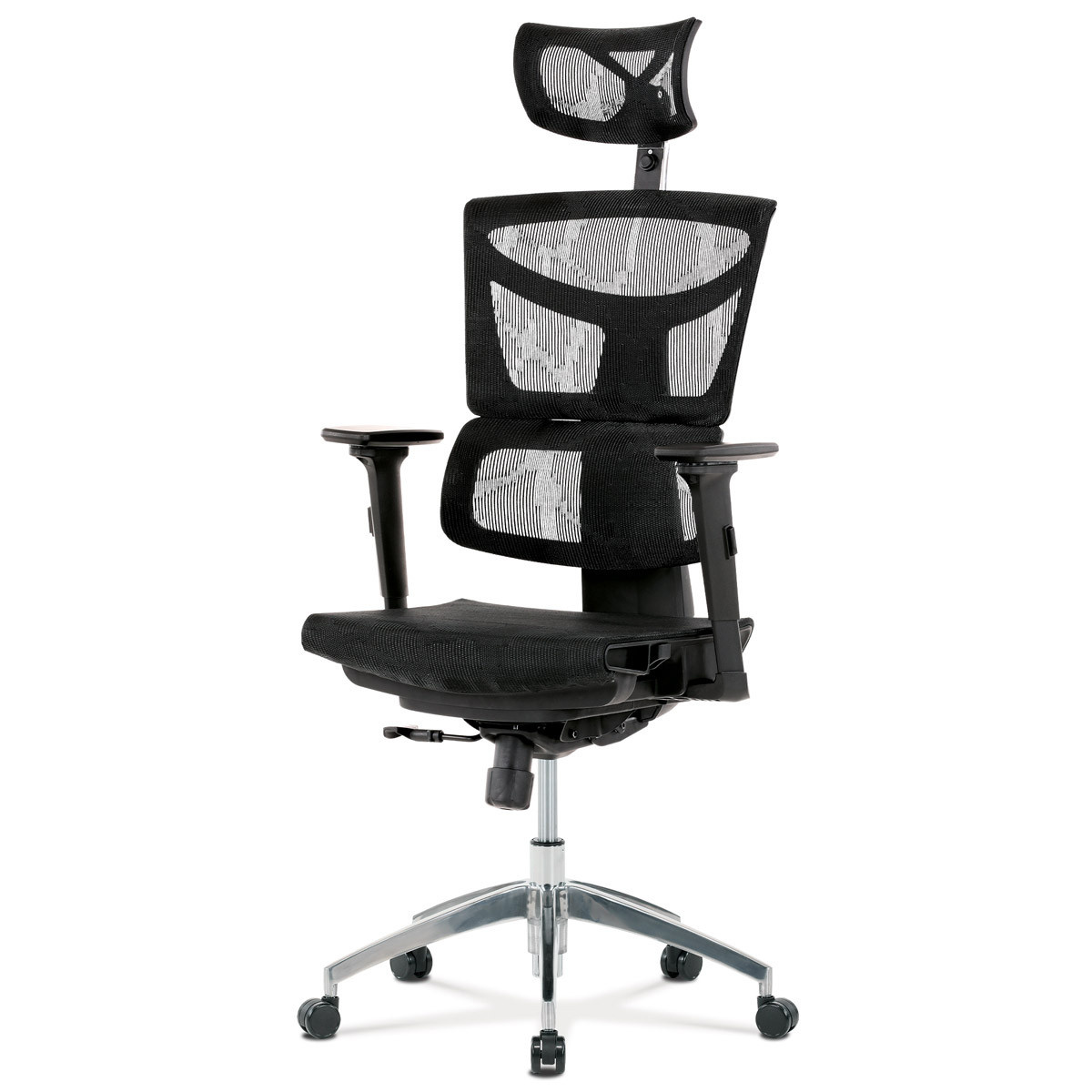 Kancelárska stolička, čierny plastový sieťovaný poťah, syncho mech., hliníkový kríž