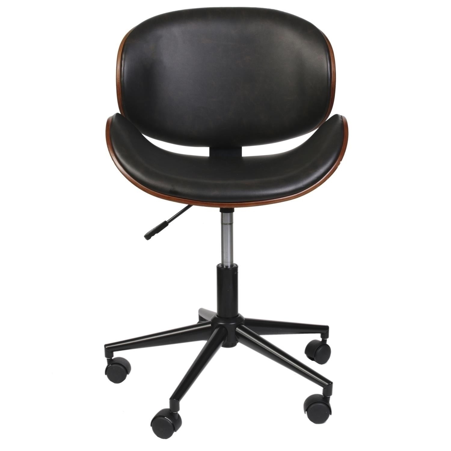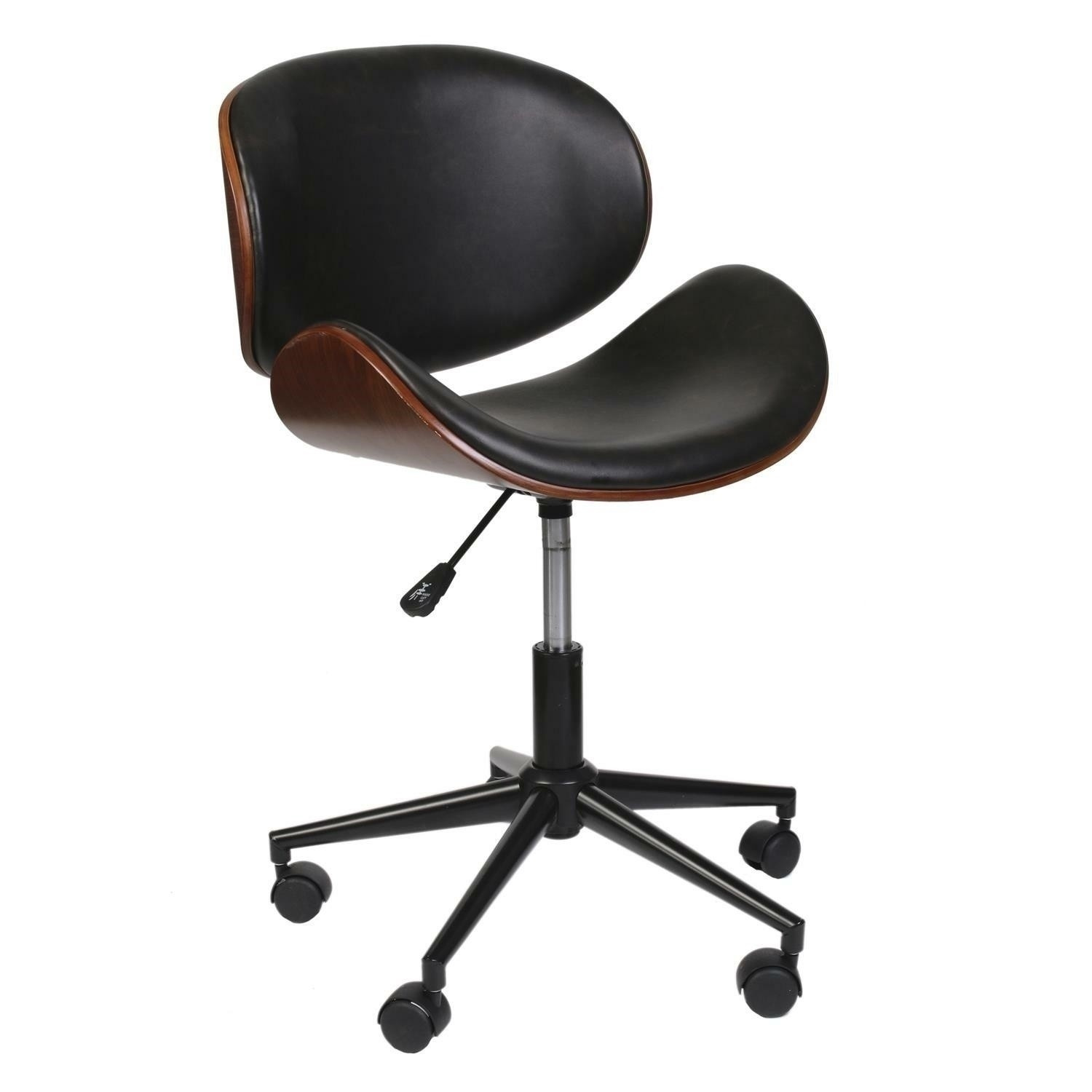 Moderná a zároveň elegantná kancelárska stolička očarí každého používateľa. Kreslo Reno je zaujímavou kombináciou ohýbanej topoľovej preglejky a čiernej ekologickej kože. Dve preglejkové mušle boli spojené pomocou kovového, plochého držiaka. Kreslo s nastaviteľnou výškou bolo umiestnené na kovovej základni. Päť koliesok umožňuje jemné posúvanie kresla. Regulácia výšky umožní jej ideálne prispôsobenie používateľovi. Rozmery balenia: 57,5x27,5x57,5 cm Výška: 77-89 Šírka: 51 Hĺbka: 51,5 Výška sedadla: 42-54
