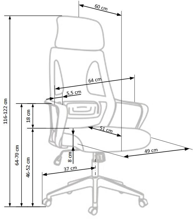 rozmery: 64/60/116-122/46-52 cm, mechanizmus TILT / nastaviteľná opierka hlavy, textilná membrána / sieťovina, farba: čierna - sivá