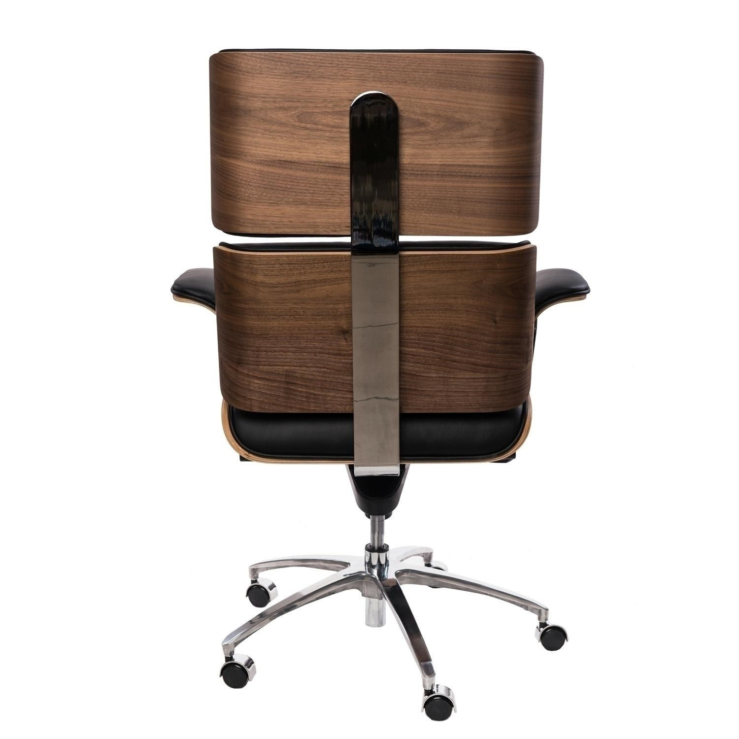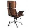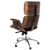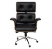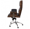 Kancelárske kreslo VIP čierna koža, orechová dyha, chróm
