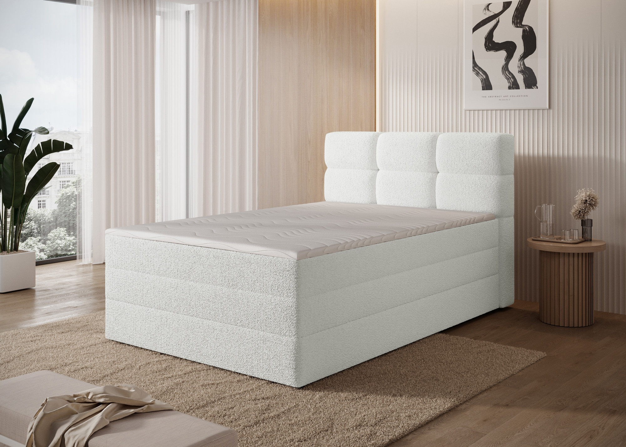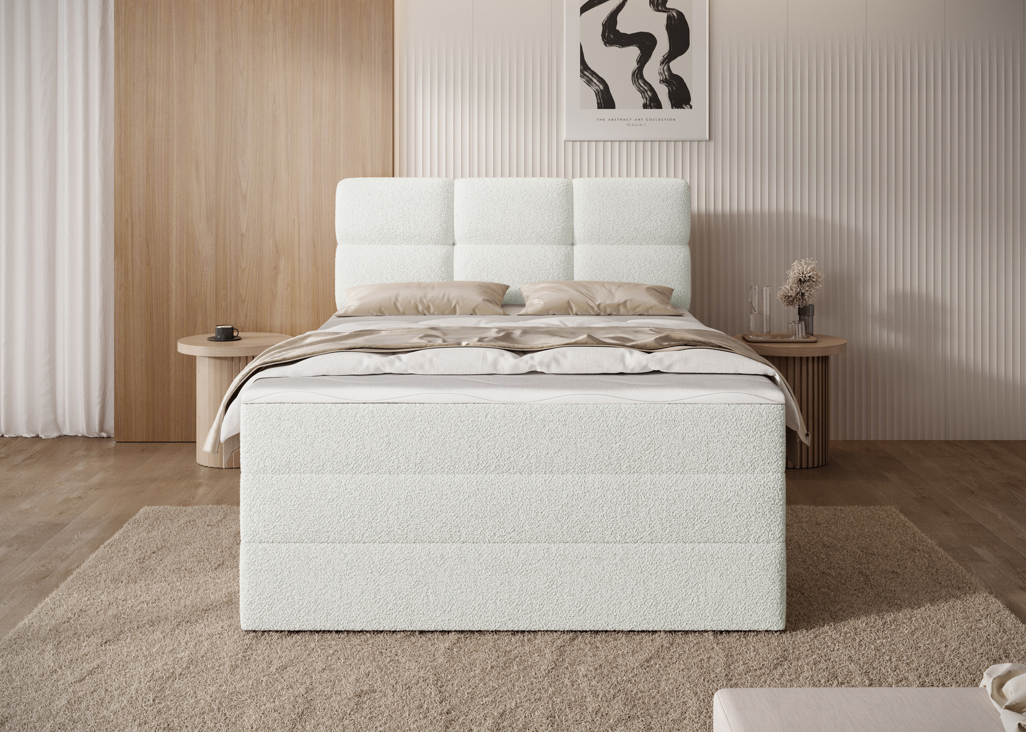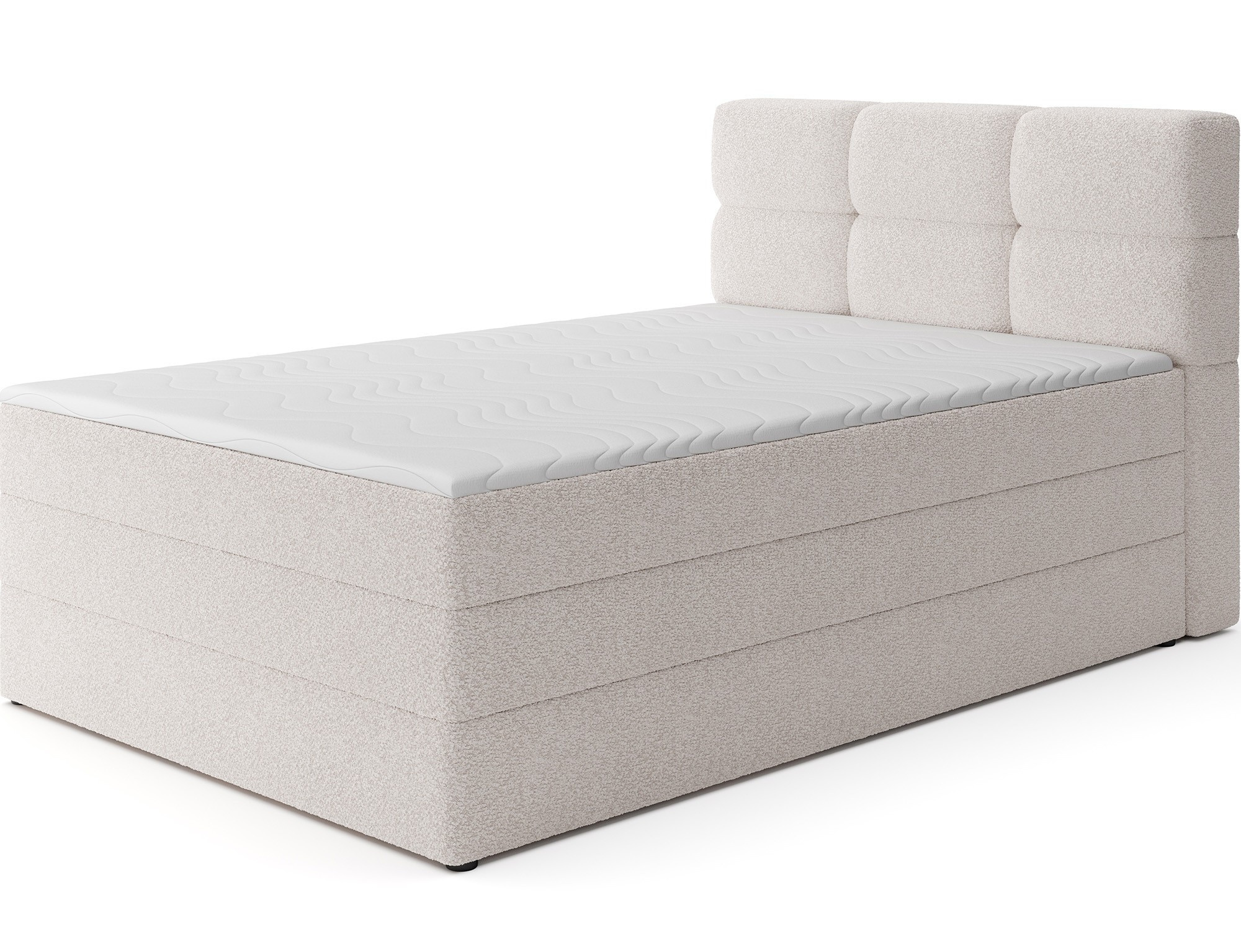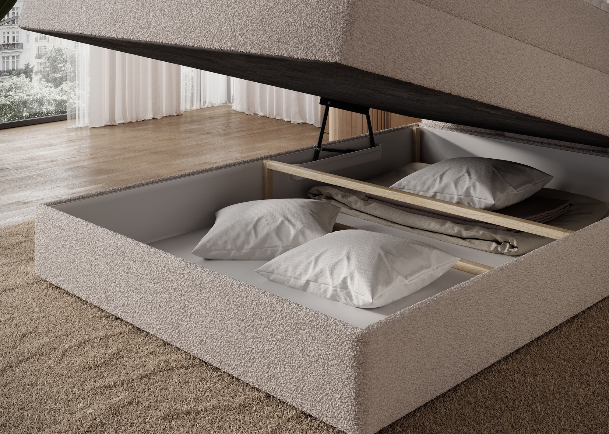 Kontinentálna posteľ Kasped je modernou a funkčnou voľbou pre každú spálňu, dostupná v dvoch veľkostiach: 215x121x108 cm a 215x141x108 cm, čo umožňuje ľahké prispôsobenie individuálnym potrebám a rozmerom miestnosti. Konštrukcia postele je založená na pevnom ráme vyrobenom z masívneho dreva a drevotriesky, čo zaisťuje dlhodobú stabilitu a odolnosť. V srdci dizajnu sa nachádza bonellová pružinová matrac, trvalo pripevnená k rámu, ktorá poskytuje spoľahlivú oporu tela a podporuje správnu cirkuláciu vzduchu pre zdravý a ergonomický spánok. Navyše posteľ obsahuje dve vrstvy vysoko kvalitnej peny – penu T2130 a penu T2540 – ktoré v kombinácii s bonellovou pružinovou jednotkou zvyšujú flexibilitu, pohodlie a prispôsobenie sa kontúram tela, čo podporuje pokojný a regeneračný spánok. Celá štruktúra je definovaná čistými líniami a modernou estetikou, doplnená čiernymi nohami nábytku z odolného plastu, ktoré pridávajú vizuálnu ľahkosť a zároveň zabezpečujú konštrukčnú integritu. Vysoko praktickou funkciou je vstavaný úložný priestor na posteľnú bielizeň, ktorý poskytuje pohodlné miesto na uloženie prikrývok, vankúšov alebo iných textílií, čo pomáha udržať spálňu čistú a usporiadanú. Posteľ Kasped kombinuje prvotriedne remeselné spracovanie, moderný dizajn a každodennú funkčnosť, čo z nej robí ideálnu voľbu ako pre moderné, tak aj pre klasickejšie interiérové usporiadania.