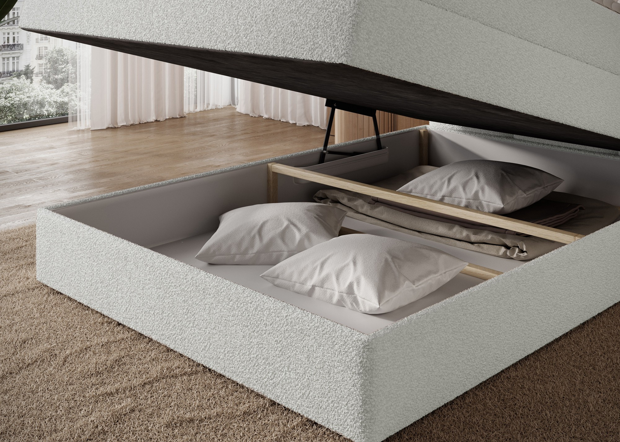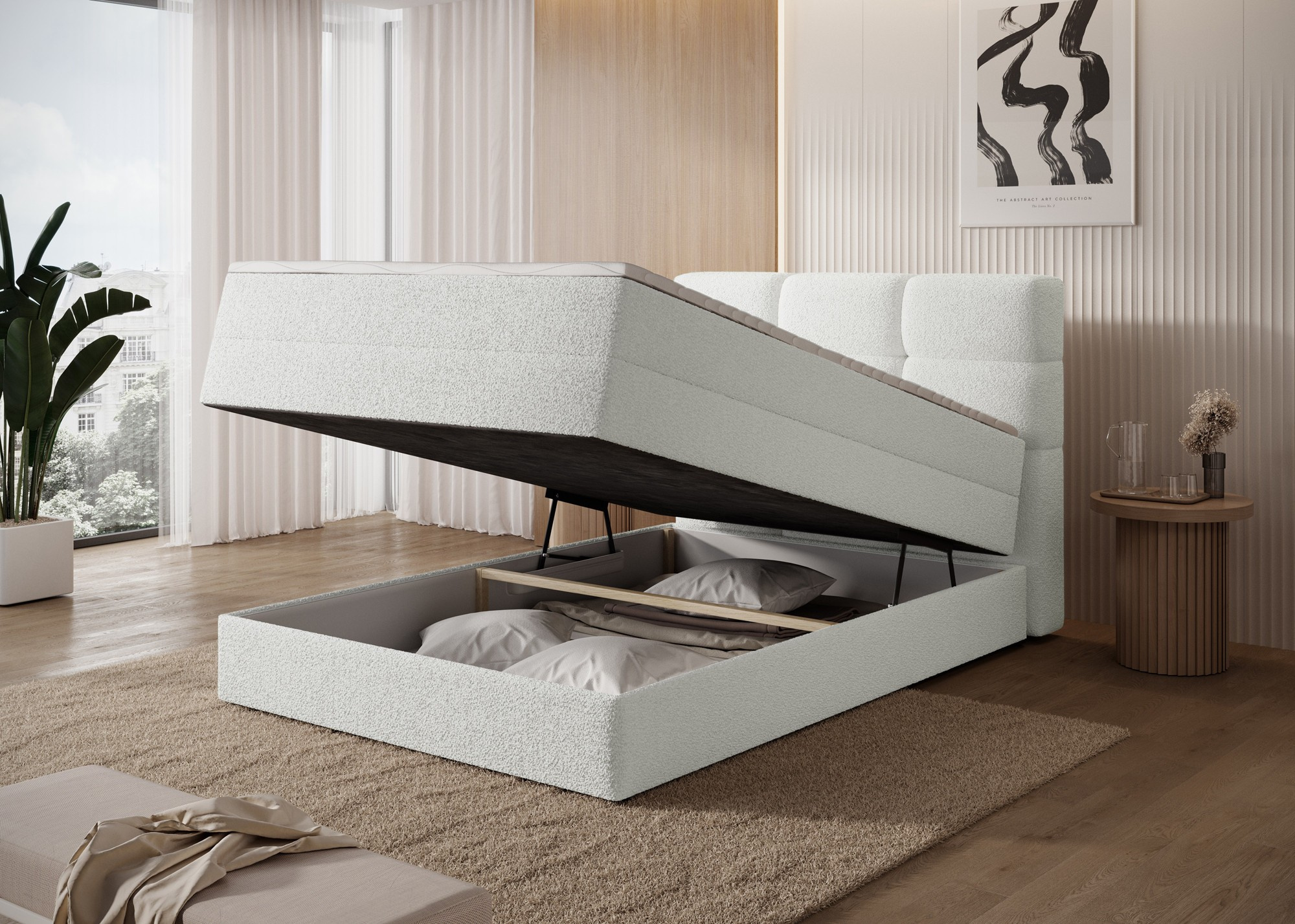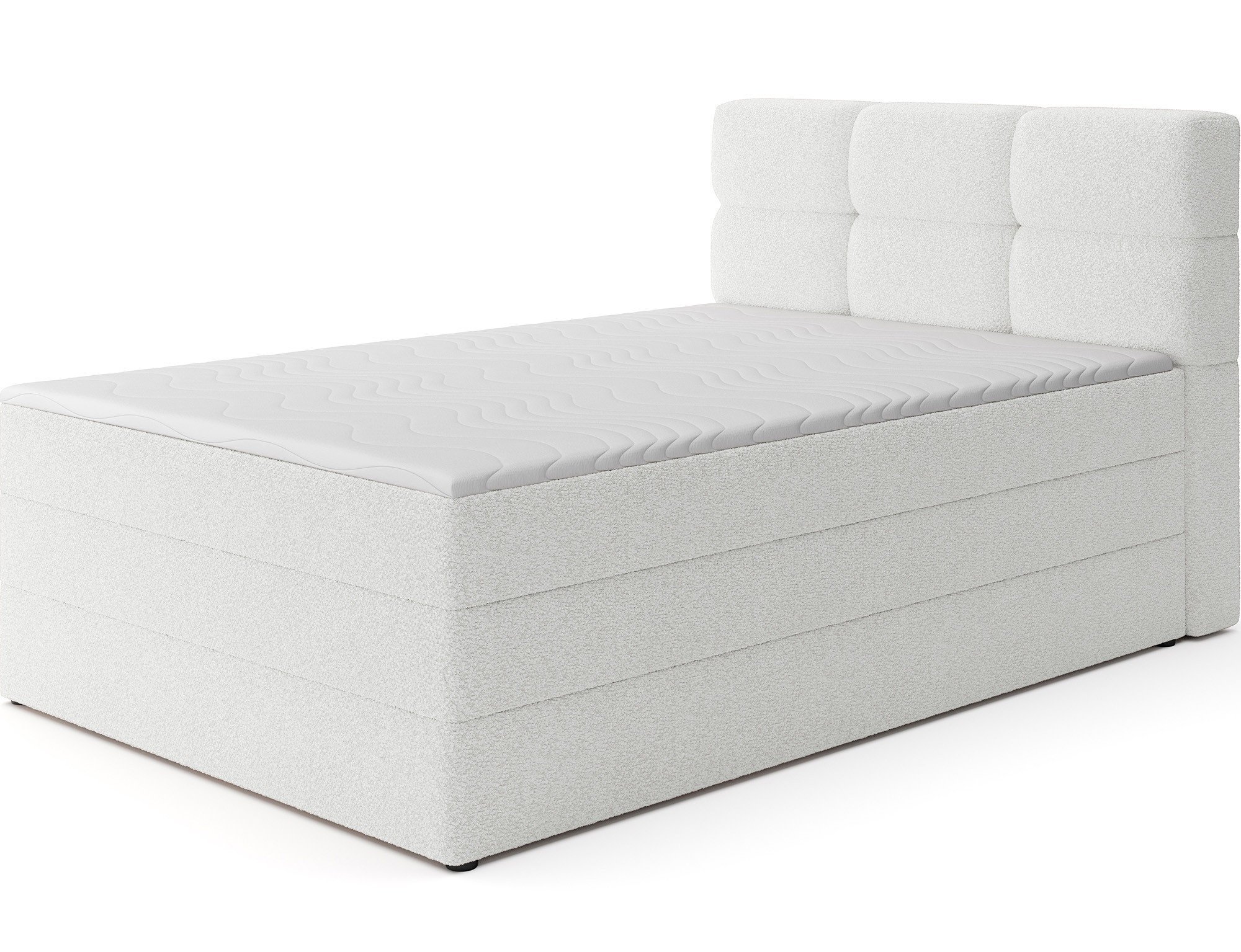 Kontinentálna posteľ Kasped je modernou a funkčnou voľbou pre každú spálňu, dostupná v dvoch veľkostiach: 215x121x108 cm a 215x141x108 cm, čo umožňuje ľahké prispôsobenie individuálnym potrebám a rozmerom miestnosti. Konštrukcia postele je založená na pevnom ráme vyrobenom z masívneho dreva a drevotriesky, čo zaisťuje dlhodobú stabilitu a odolnosť. V srdci dizajnu sa nachádza bonellová pružinová matrac, trvalo pripevnená k rámu, ktorá poskytuje spoľahlivú oporu tela a podporuje správnu cirkuláciu vzduchu pre zdravý a ergonomický spánok. Navyše posteľ obsahuje dve vrstvy vysoko kvalitnej peny – penu T2130 a penu T2540 – ktoré v kombinácii s bonellovou pružinovou jednotkou zvyšujú flexibilitu, pohodlie a prispôsobenie sa kontúram tela, čo podporuje pokojný a regeneračný spánok. Celá štruktúra je definovaná čistými líniami a modernou estetikou, doplnená čiernymi nohami nábytku z odolného plastu, ktoré pridávajú vizuálnu ľahkosť a zároveň zabezpečujú konštrukčnú integritu. Vysoko praktickou funkciou je vstavaný úložný priestor na posteľnú bielizeň, ktorý poskytuje pohodlné miesto na uloženie prikrývok, vankúšov alebo iných textílií, čo pomáha udržať spálňu čistú a usporiadanú. Posteľ Kasped kombinuje prvotriedne remeselné spracovanie, moderný dizajn a každodennú funkčnosť, čo z nej robí ideálnu voľbu ako pre moderné, tak aj pre klasickejšie interiérové usporiadania.