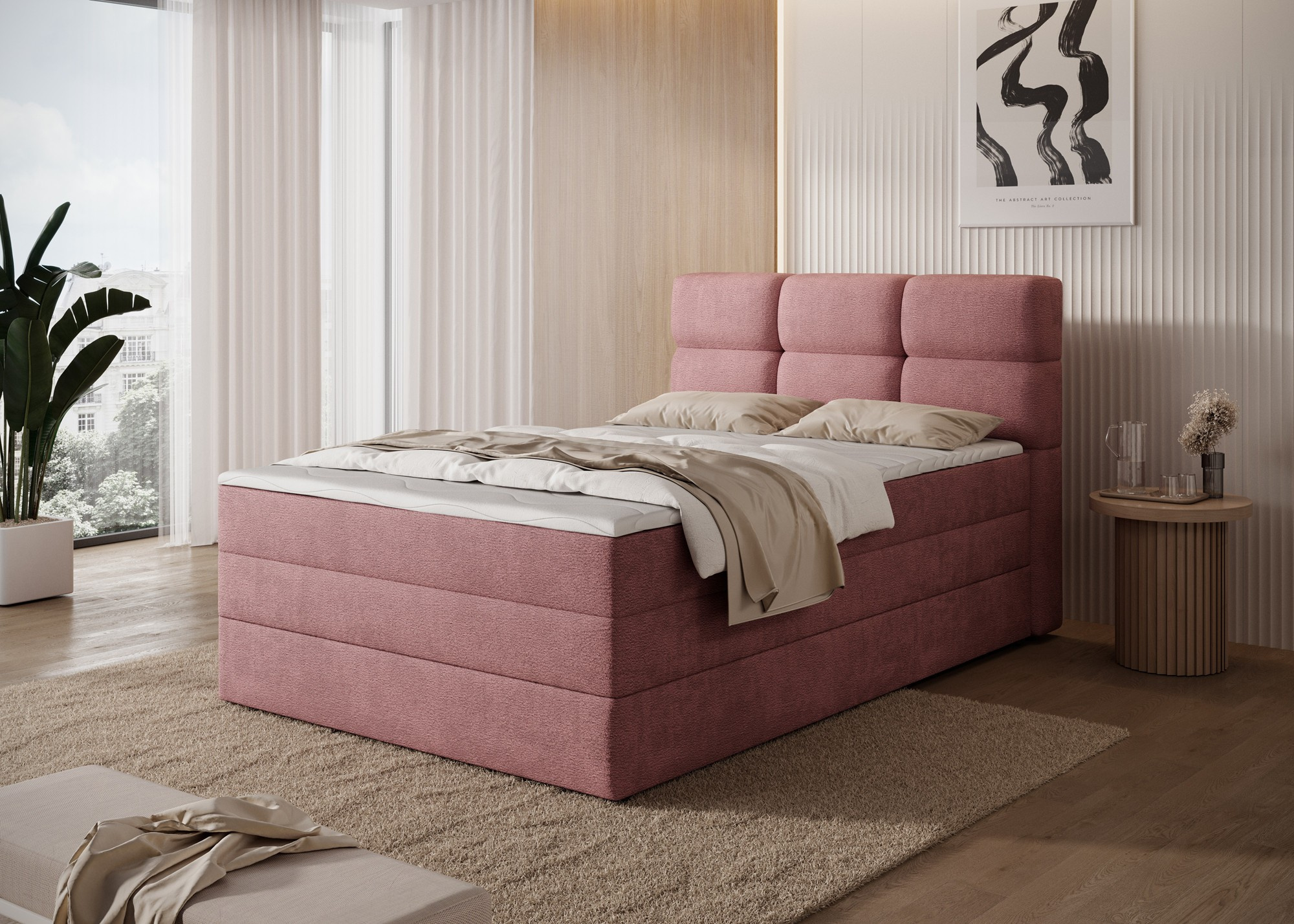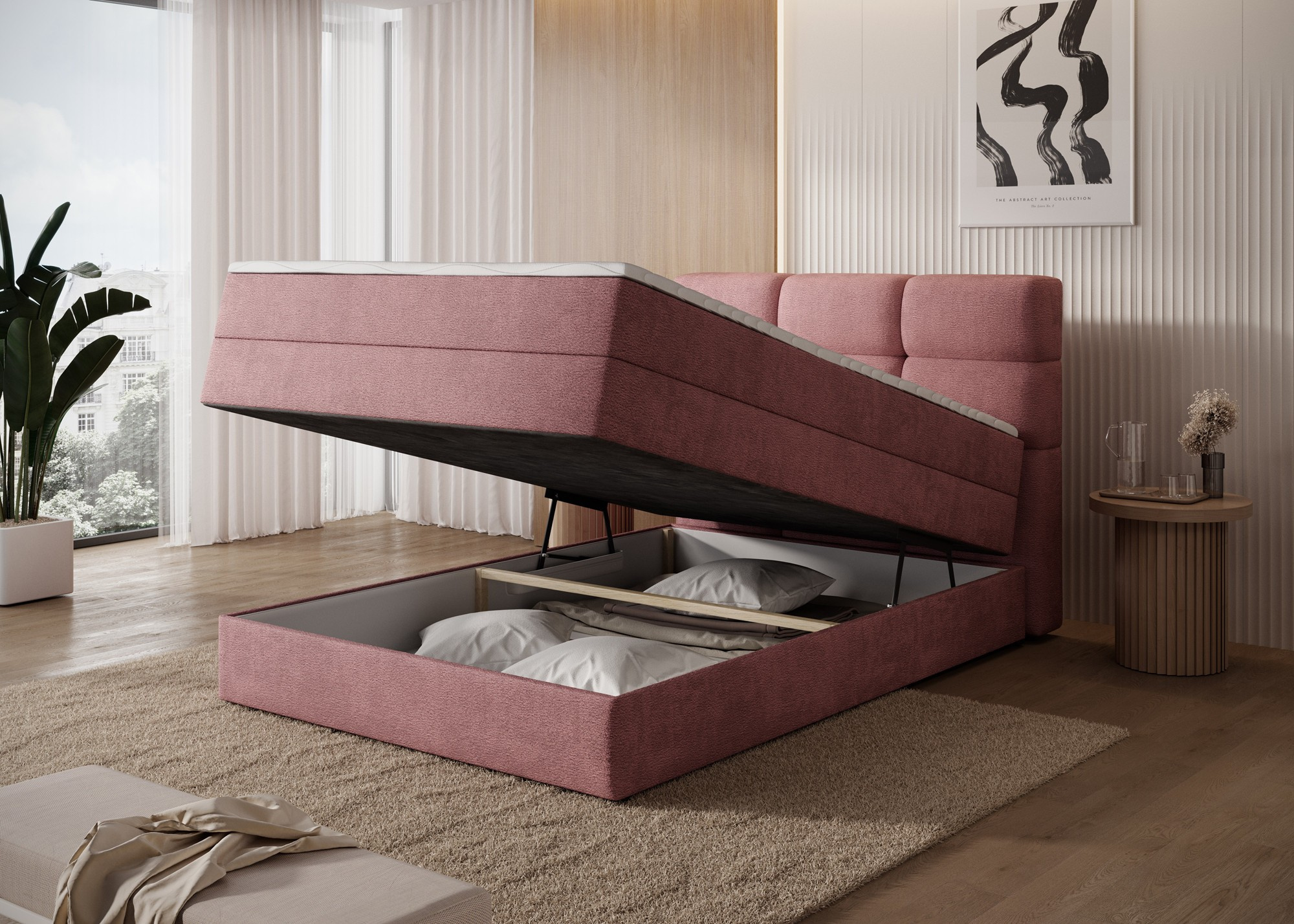 Kontinentálna posteľ Kasped je modernou a funkčnou voľbou pre každú spálňu, dostupná v dvoch veľkostiach: 215x121x108 cm a 215x141x108 cm, čo umožňuje ľahké prispôsobenie individuálnym potrebám a rozmerom miestnosti. Konštrukcia postele je založená na pevnom ráme vyrobenom z masívneho dreva a drevotriesky, čo zaisťuje dlhodobú stabilitu a odolnosť. V srdci dizajnu sa nachádza bonellová pružinová matrac, trvalo pripevnená k rámu, ktorá poskytuje spoľahlivú oporu tela a podporuje správnu cirkuláciu vzduchu pre zdravý a ergonomický spánok. Navyše posteľ obsahuje dve vrstvy vysoko kvalitnej peny – penu T2130 a penu T2540 – ktoré v kombinácii s bonellovou pružinovou jednotkou zvyšujú flexibilitu, pohodlie a prispôsobenie sa kontúram tela, čo podporuje pokojný a regeneračný spánok. Celá štruktúra je definovaná čistými líniami a modernou estetikou, doplnená čiernymi nohami nábytku z odolného plastu, ktoré pridávajú vizuálnu ľahkosť a zároveň zabezpečujú konštrukčnú integritu. Vysoko praktickou funkciou je vstavaný úložný priestor na posteľnú bielizeň, ktorý poskytuje pohodlné miesto na uloženie prikrývok, vankúšov alebo iných textílií, čo pomáha udržať spálňu čistú a usporiadanú. Posteľ Kasped kombinuje prvotriedne remeselné spracovanie, moderný dizajn a každodennú funkčnosť, čo z nej robí ideálnu voľbu ako pre moderné, tak aj pre klasickejšie interiérové usporiadania.