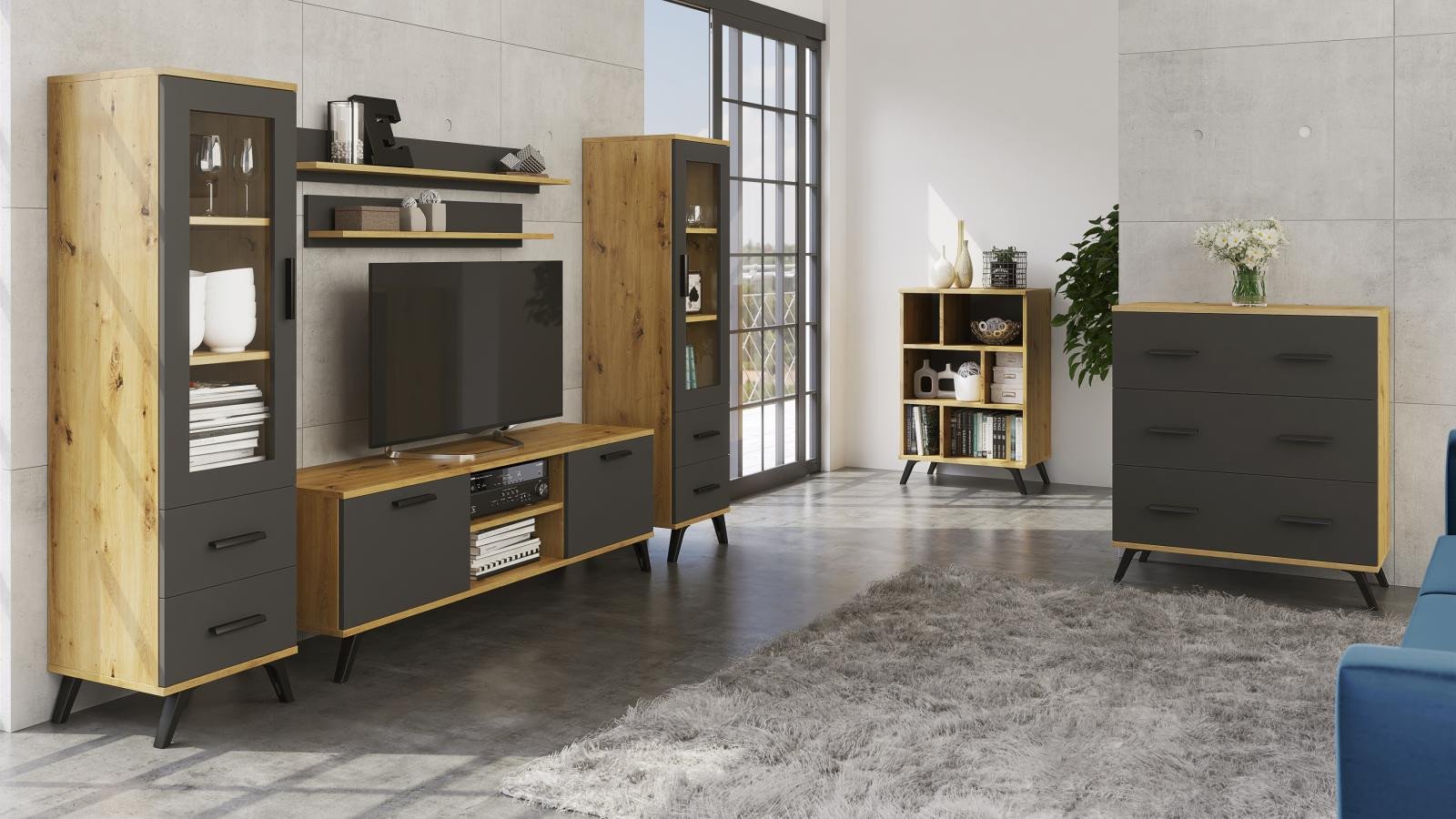 Nevyhovuje vám nábytok, ktorý obsahuje len pevné časti? Nechcete byť obmedzovaní vo svojej kreativite? Máte radi moderný štýl? Potom je sektorový nábytok Roky určený pre vás. Kolekcia sektorového nábytku Roky je skvelou kombináciou dizajnu, funkčnosti a modernosti. Pozrite si všetky prvky z tejto kolekcie a vytvorte si obývaciu alebo detskú izbu podľa vlastného návrhu. Nábytok sa dodáva v demontovanom stave a obsahuje montážny plán vrátane všetkých potrebných spojovacích prvkov. Zobrazené dekorácie nie sú zahrnuté v cene.