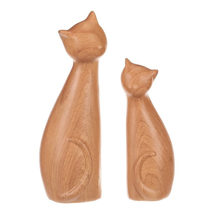 Kočky - polyresinové figurky, imitace dřeva, cena za sadu 2 ks