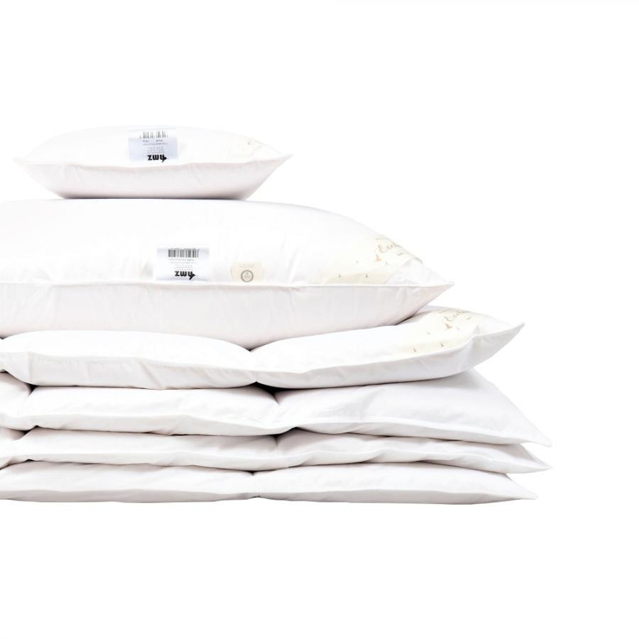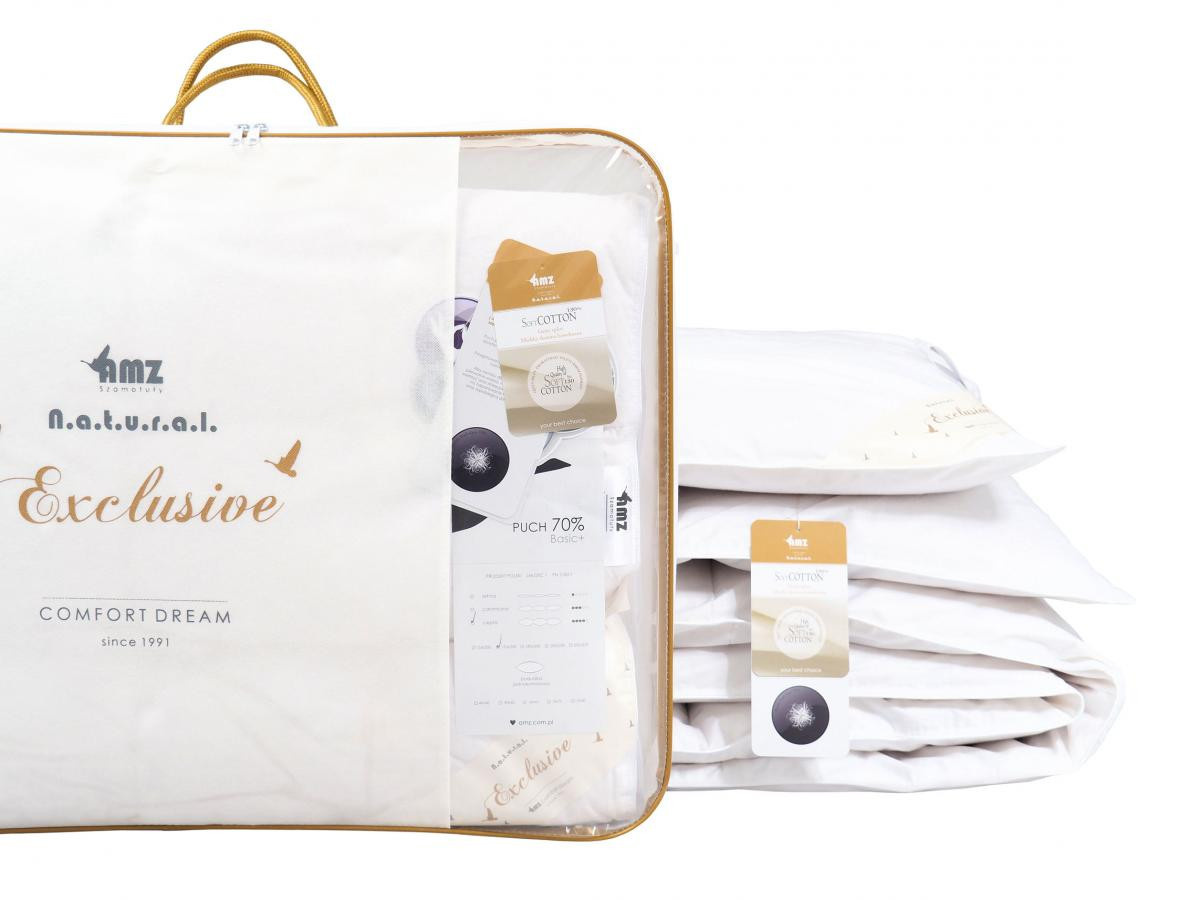 PUCHDRA 160x200 celoročná POLSKI PUCH 70% Soft Cotton je jedinečná tkanina s hustou väzbou, vyrobená z najkvalitnejších bavlnených vlákien, ktorá zaručuje odolnosť a pohodlie. Vďaka špeciálnej impregnácii je jeho vnútorná strana ešte pevnejšia a zvyšuje kvalitu spánku vďaka mäkkosti, ktorá príjemne obklopuje telo. Jej ľahkosť, ktorá sa získava z jemných priadzí, tiež umožňuje vytvárať ľahšie výrobky, zatiaľ čo prirodzená priedušnosť bavlny podporuje cirkuláciu vzduchu, reguluje vlhkosť a zabraňuje prehrievaniu tela. Prikrývky a vankúše sú zabalené v elegantných polstrovaných taškách a funkčných priedušných vreckách, ktoré ich nielen chránia počas prepravy a skladovania, ale zároveň zvyšujú ich estetickú hodnotu.