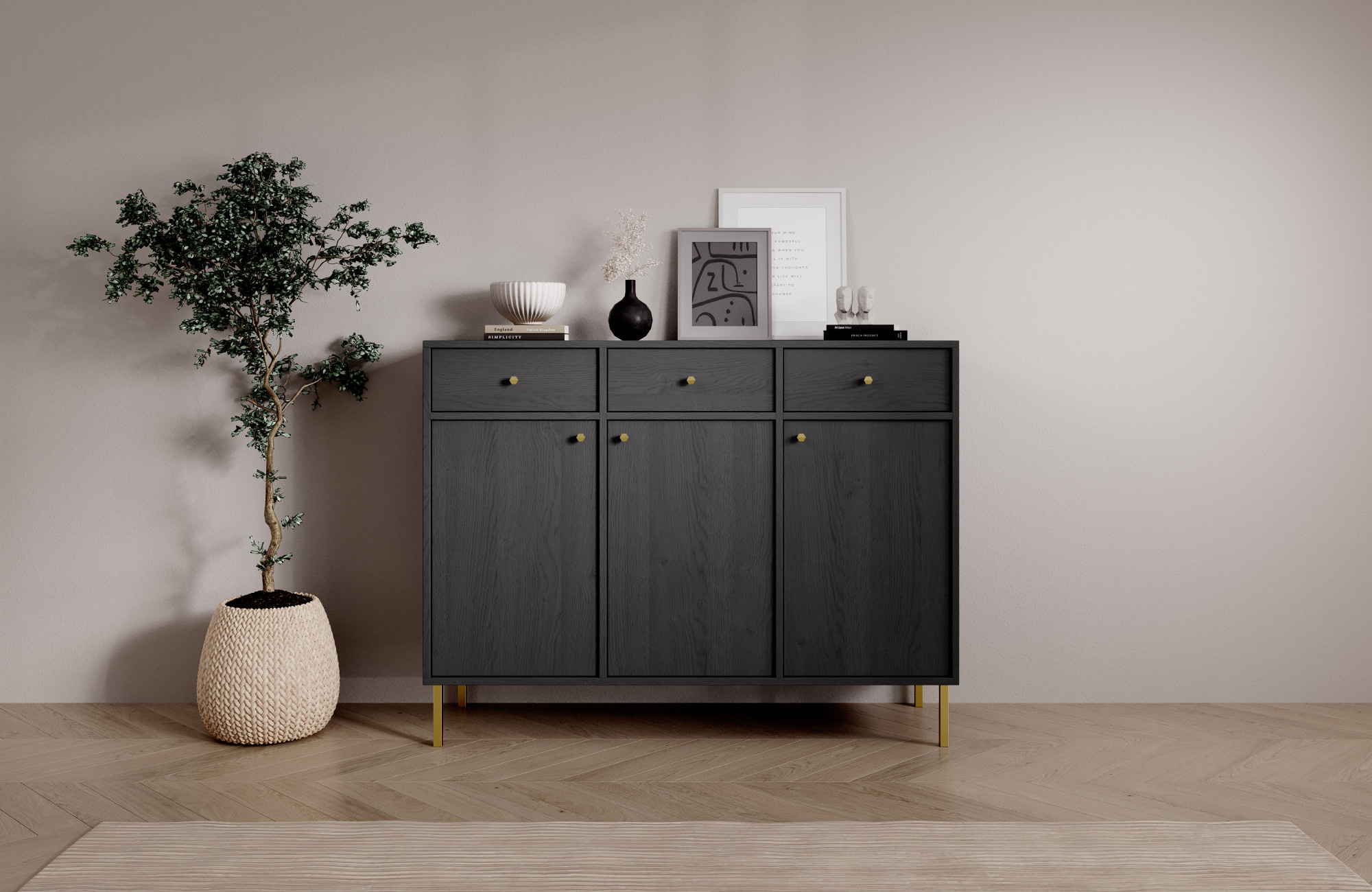 Komoda System Tili je moderný nábytok, ktorý sa vďaka svojej premyslenej farebnosti a elegantnému dizajnu dokonale hodí do rôznorodých interiérov. Dostupná v troch farebných variantoch: **čierna**, **piesková béžová** a **eukalyptus**, komoda predstavuje harmonické spojenie funkčnosti a estetiky.Každá farebná varianta bola starostlivo navrhnutá, aby zdôraznila jedinečný charakter interiéru. **Čierna** dodáva komode sofistikovaný, moderný vzhľad, ideálny pre minimalistické a elegantné priestory. **Piesková béžová** prináša teplo a jemnosť, dokonale sa hodí k svetlým, prírodným prvkom interiéru. Zatiaľ čo **eukalyptus** je odtieň inšpirovaný prírodou, ktorý prináša do interiéru sviežosť a ľahkosť, ideálny pre moderné aj viac klasické aranžmány.