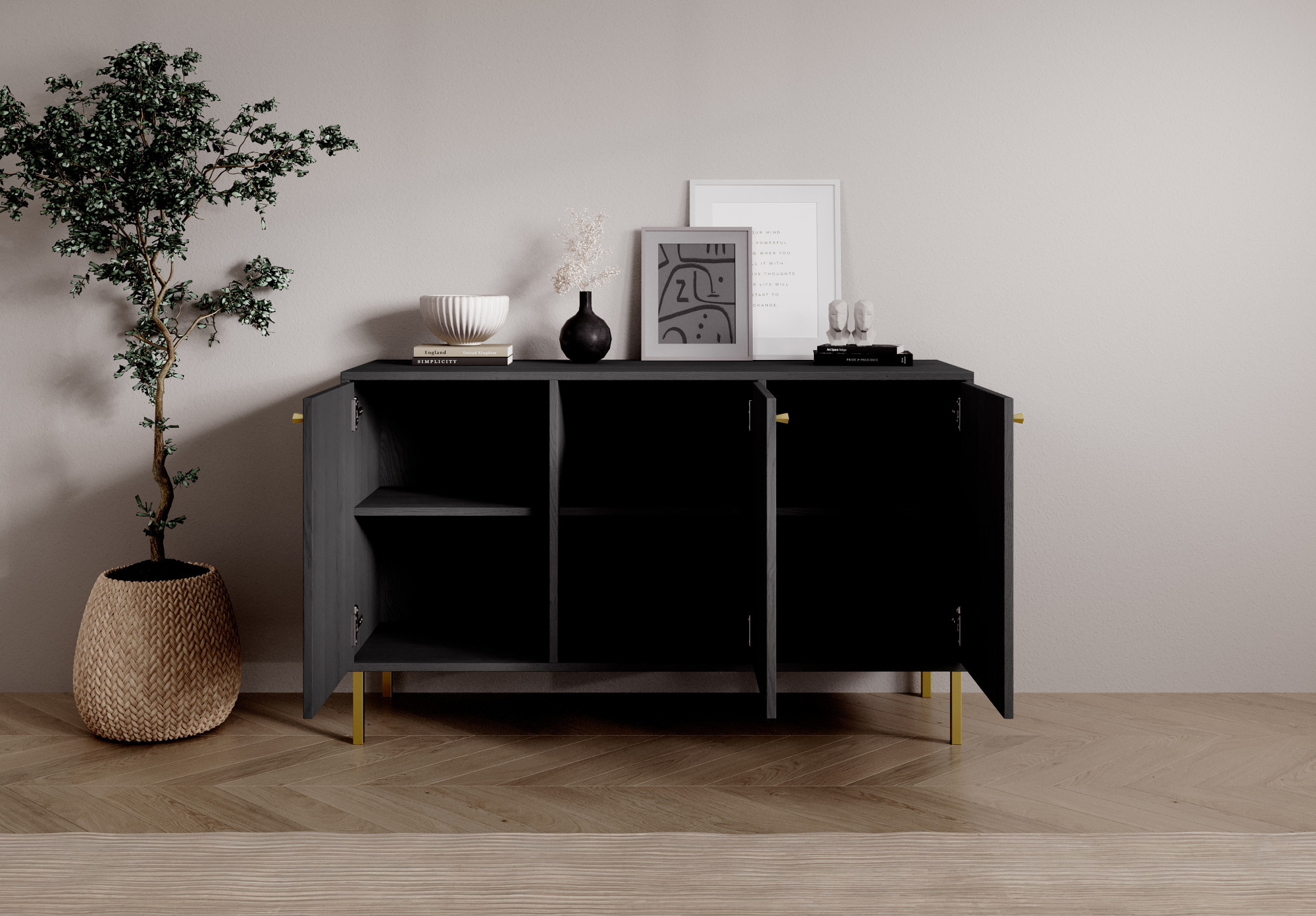 Komoda System Tili je moderný nábytok, ktorý sa vďaka svojej premyslenej farebnosti a elegantnému dizajnu dokonale hodí do rôznorodých interiérov. Dostupná v troch farebných variantoch: **čierna**, **piesková béžová** a **eukalyptus**, komoda predstavuje harmonické spojenie funkčnosti a estetiky.Každá farebná varianta bola starostlivo navrhnutá, aby zdôraznila jedinečný charakter interiéru. **Čierna** dodáva komode sofistikovaný, moderný vzhľad, ideálny pre minimalistické a elegantné priestory. **Piesková béžová** prináša teplo a jemnosť, dokonale sa hodí k svetlým, prírodným prvkom interiéru. Zatiaľ čo **eukalyptus** je odtieň inšpirovaný prírodou, ktorý prináša do interiéru sviežosť a ľahkosť, ideálny pre moderné aj viac klasické aranžmány.