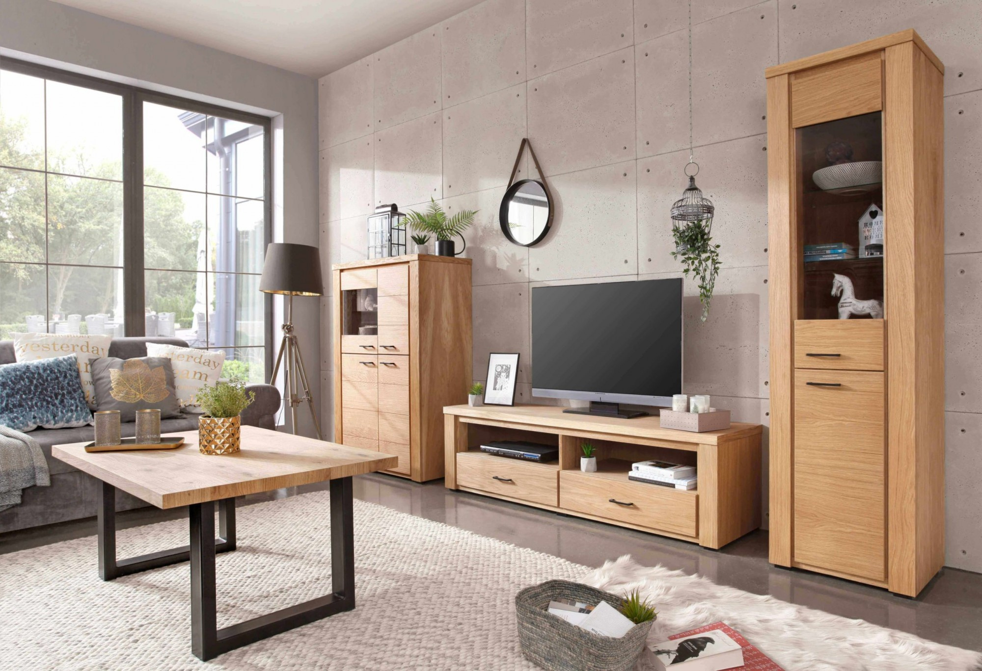 Komody, skrine, menšie skrinky a veľké vitríny. Špeciálne pre našich zákazníkov sme pripravili rozsiahly katalóg nábytku do obývacej izby, z ktorých každý prvok z kolekcie Natura sa vyznačuje vysokou kvalitou spracovania a atraktívnym, jedinečným dizajnom. \n \n \n \nŠpecifikácia: \n \n- Plastové nožičky - čierne, \n- Prírodná dubová dyha - olejovaná, \n- V zásuvkách tiché dovieranie, \n- Kovové úchyty - čierne. \n \n* nábytok vyrábaný na zákazku - doba realizácie objednávky od 3 do 6 týždňov