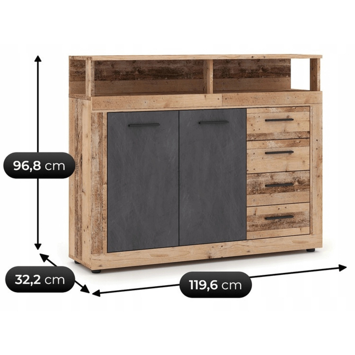 Komoda BLAGO MIDI A 119,6 cm Surový Dub/Čierna