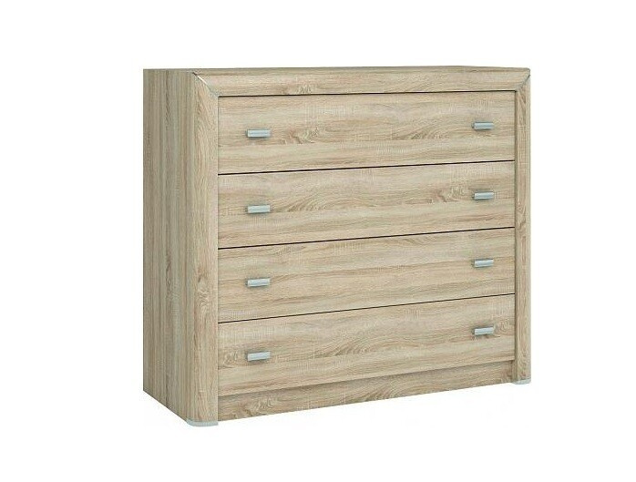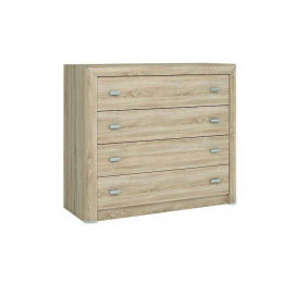 Komoda z kolekcie Cleo vyniká elegantným dizajnom a zaoblenými hranami. Nábytok je vyrobený z lamina v dekore dub sonoma.