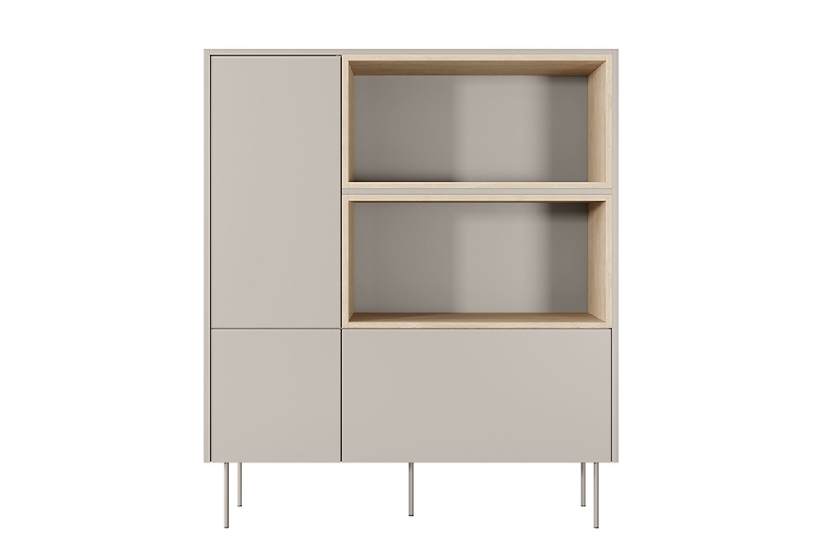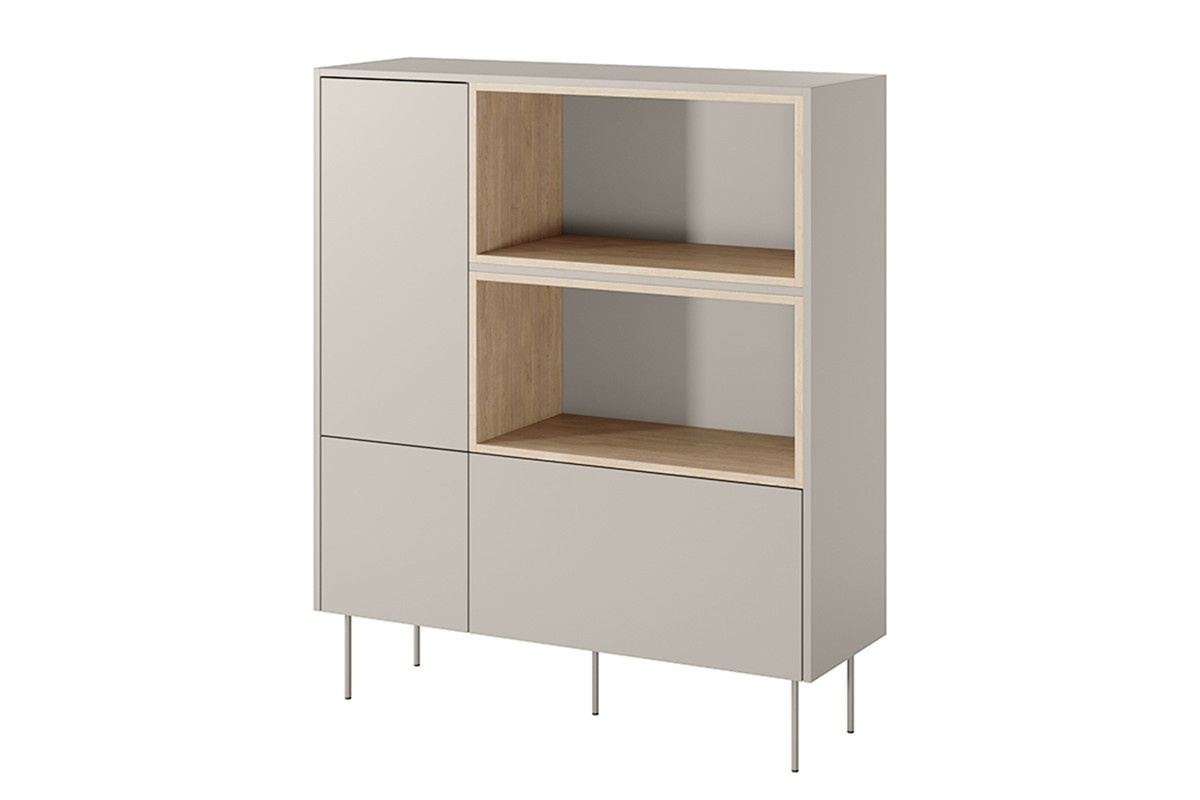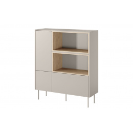 Vysoká komoda Desin 120 2D1SZ - kašmír / dub nagano, šírka: 120, výška: 140, hĺbka: 40, montáž. Truhlica RTV na čiernych kovových nohách.