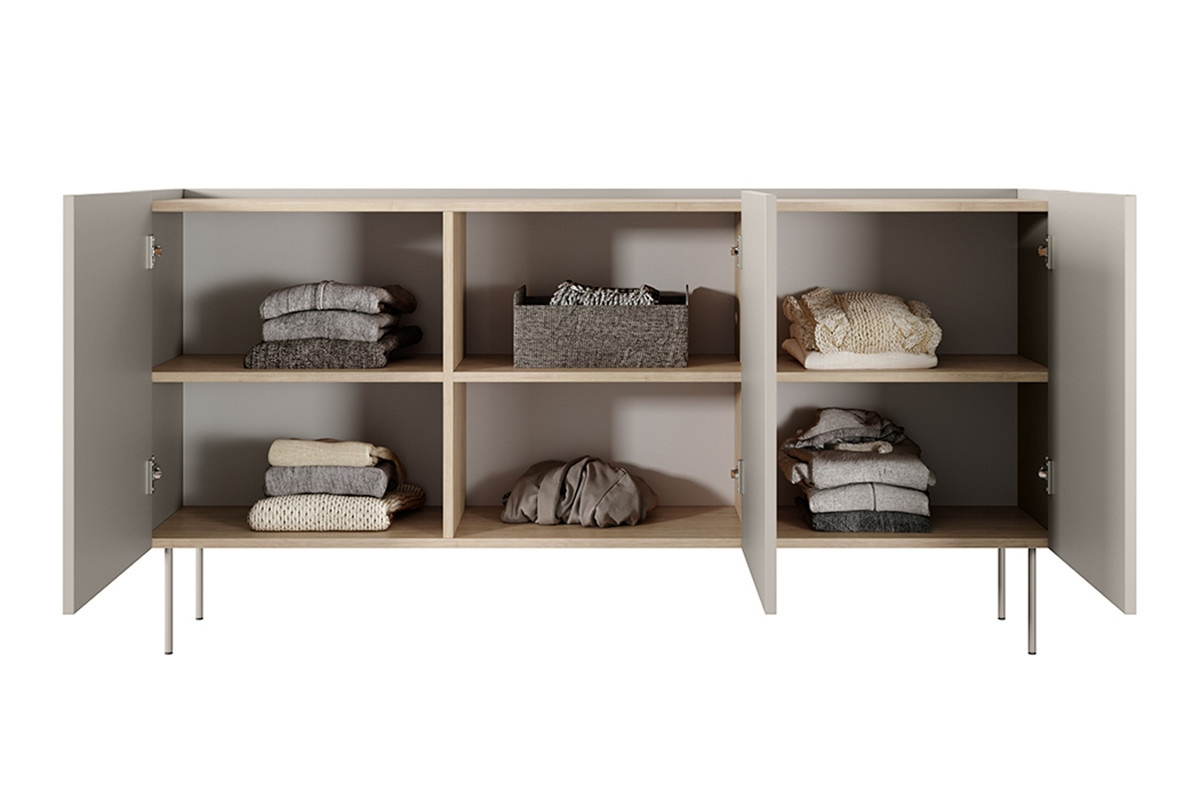 Trojdverová komoda Desin 170 3D - kašmír / dub nagano, šírka: 170, výška: 85, hĺbka: 40, montáž. Truhlica RTV na čiernych kovových nohách.
