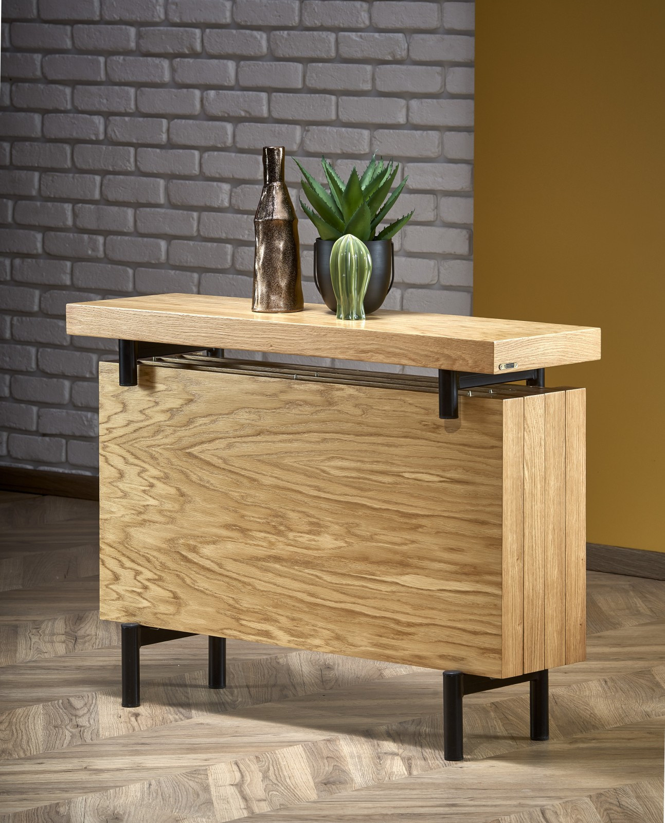 106x30x77 cm, materiál: mdf + prírodná dubová dyha / práškovaná oceľ, farba: stolová doska - prírodný dub, nohy - čierne