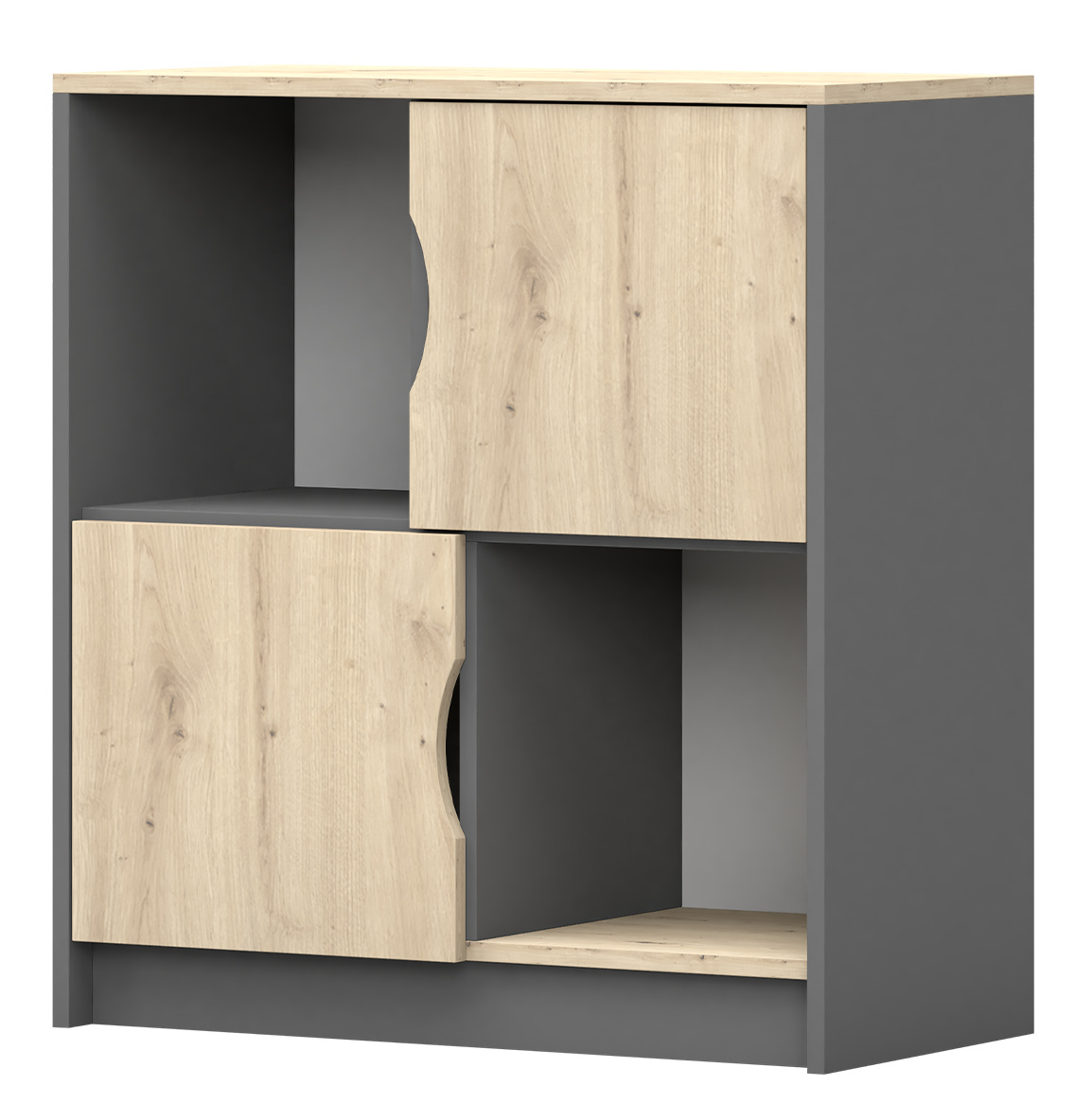 Komoda - JOY II 01, Sivá/Dub Artisan