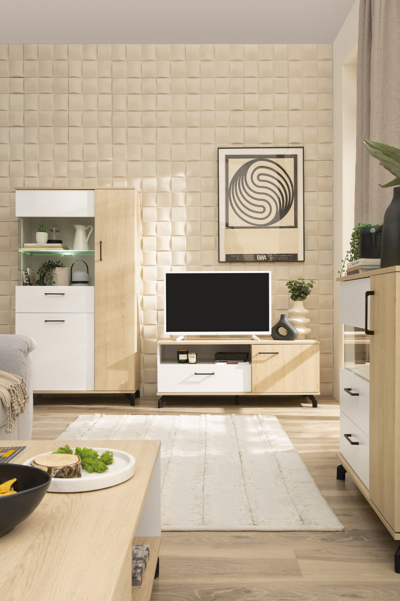 TV stolík MADISON - MD7, dub biskvit/biela Lux