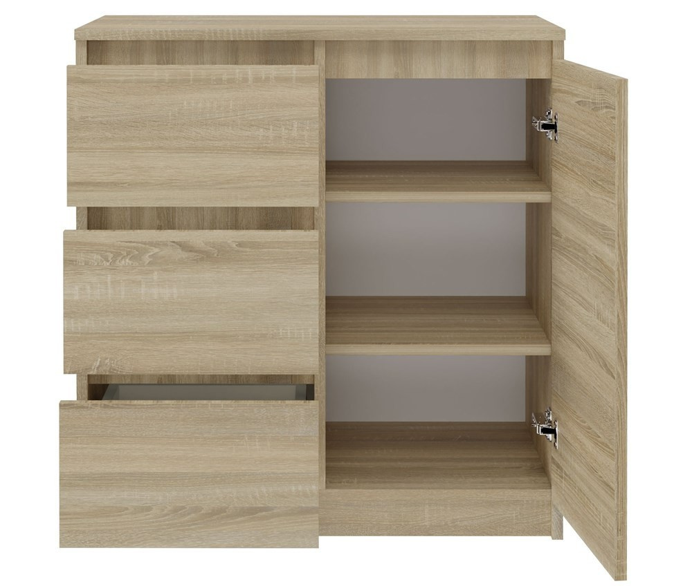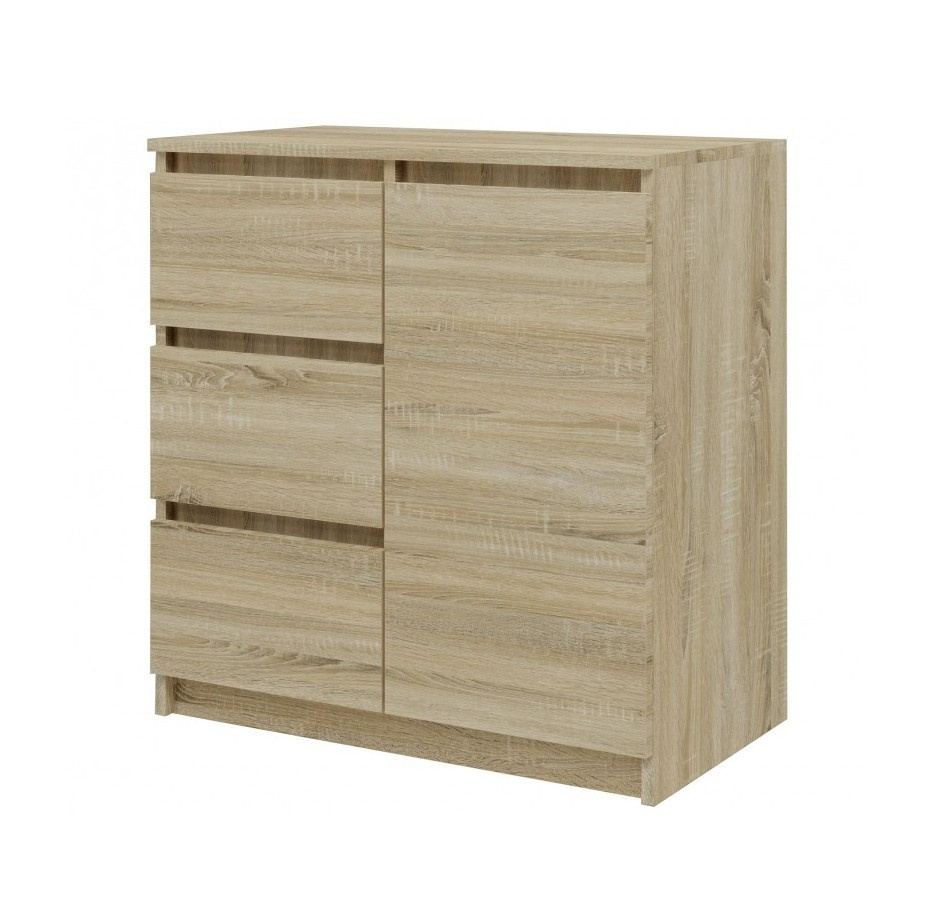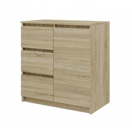 Nadčasová komoda Malvína v minimalistickom dizajne ponúka vďaka svojmu prevedeniu dostatok úložného priestoru a univerzálne použitie v ktorejkoľvek miestnosti vášho bytu či domu. Bezúchytkové čelá zásuviek zabezpečia pohodlné používanie a dotvoria moderný a útulný charakter vášho interiéru. Komoda je vyrobená z ľahko udržiavateľného lamina, hrany sú zakončené vysoko odolným ABS materiálom.