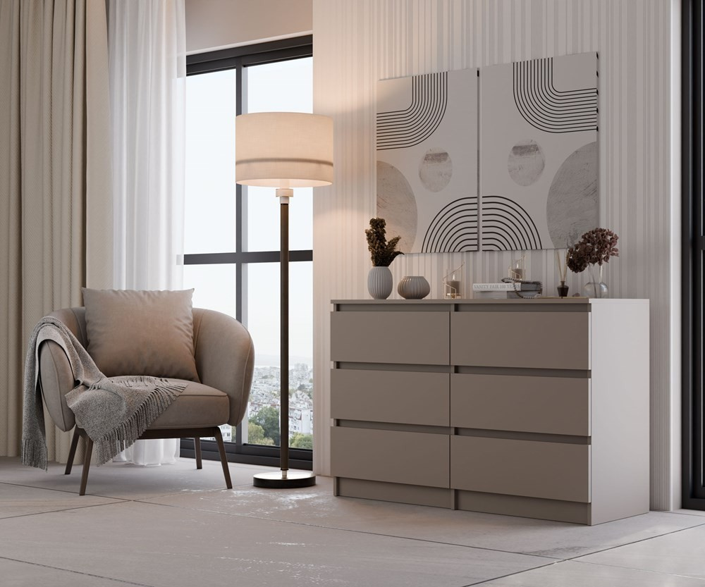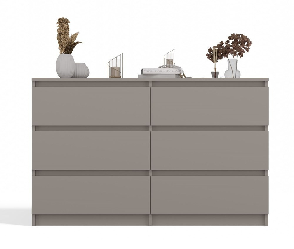 Nadčasová komoda Malvína v minimalistickom dizajne ponúka vďaka svojmu prevedeniu dostatok úložného priestoru a univerzálne použitie v ktorejkoľvek miestnosti vášho bytu či domu. Bezúchytkové čelá zásuviek zabezpečia pohodlné používanie a dotvoria moderný a útulný charakter vášho interiéru. Komoda je vyrobená z ľahko udržiavateľného lamina, hrany sú zakončené vysoko odolným ABS materiálom.