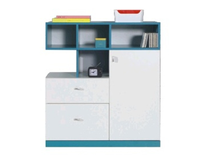Komoda MOBI MO9, Biela Lux / Tyrkysová