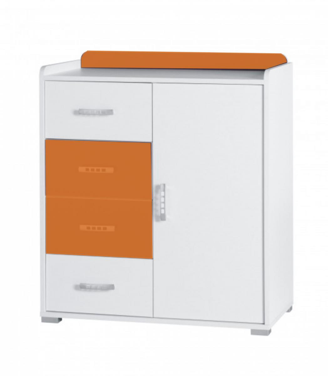 Komoda Nemo R6 biela/oranžová lesklá